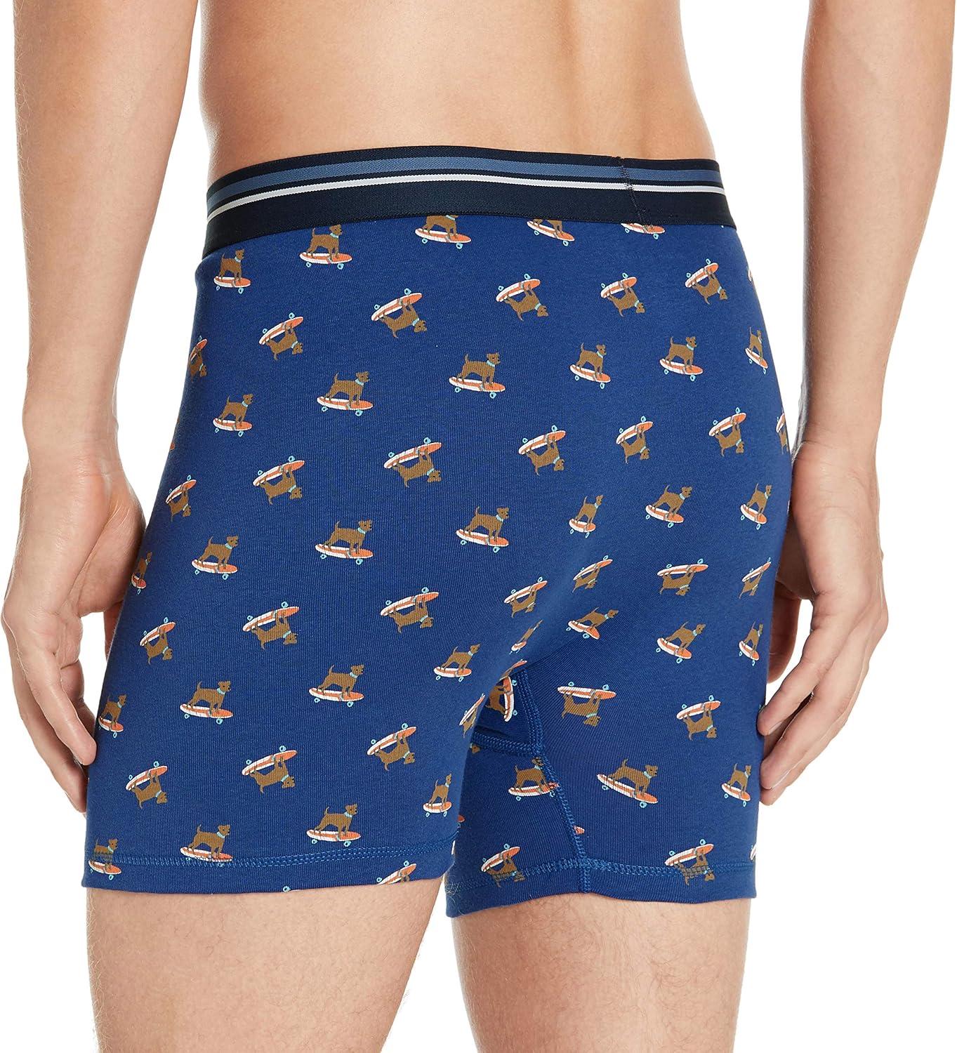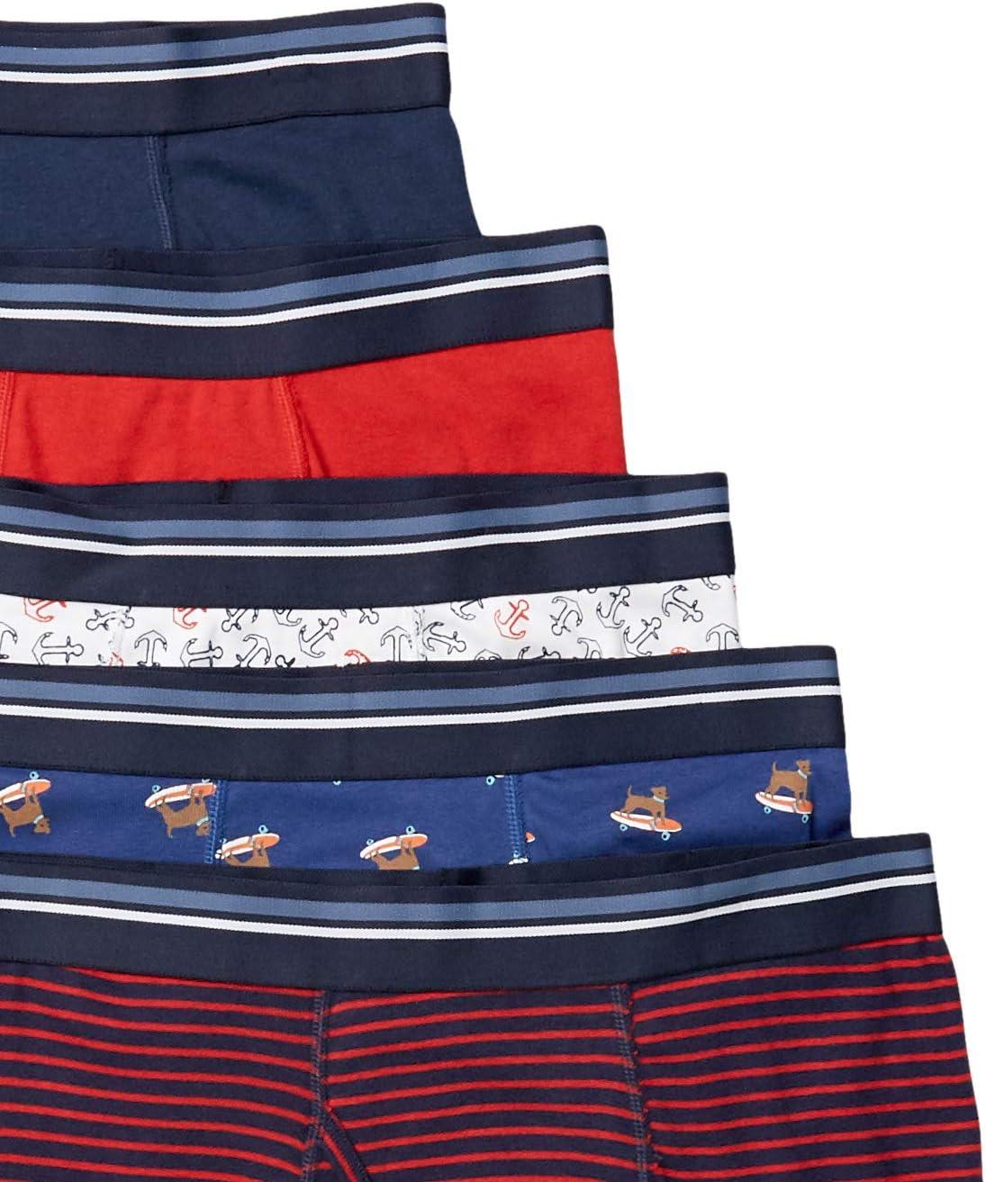 Amazon Essentials Men’s Underwear Boxer Briefs, Comfortable Cotton, Tag-Free, Pack of 5(Anchor/Dog Print/Mini Stripe)