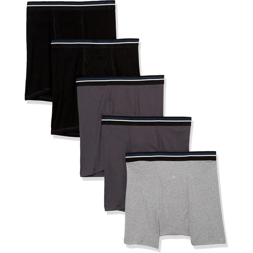 Amazon Essentials Men's Underwear Boxer Briefs, Comfortable Cotton, Tag-Free, Pack of 5(Black/Charcoal/Grey)