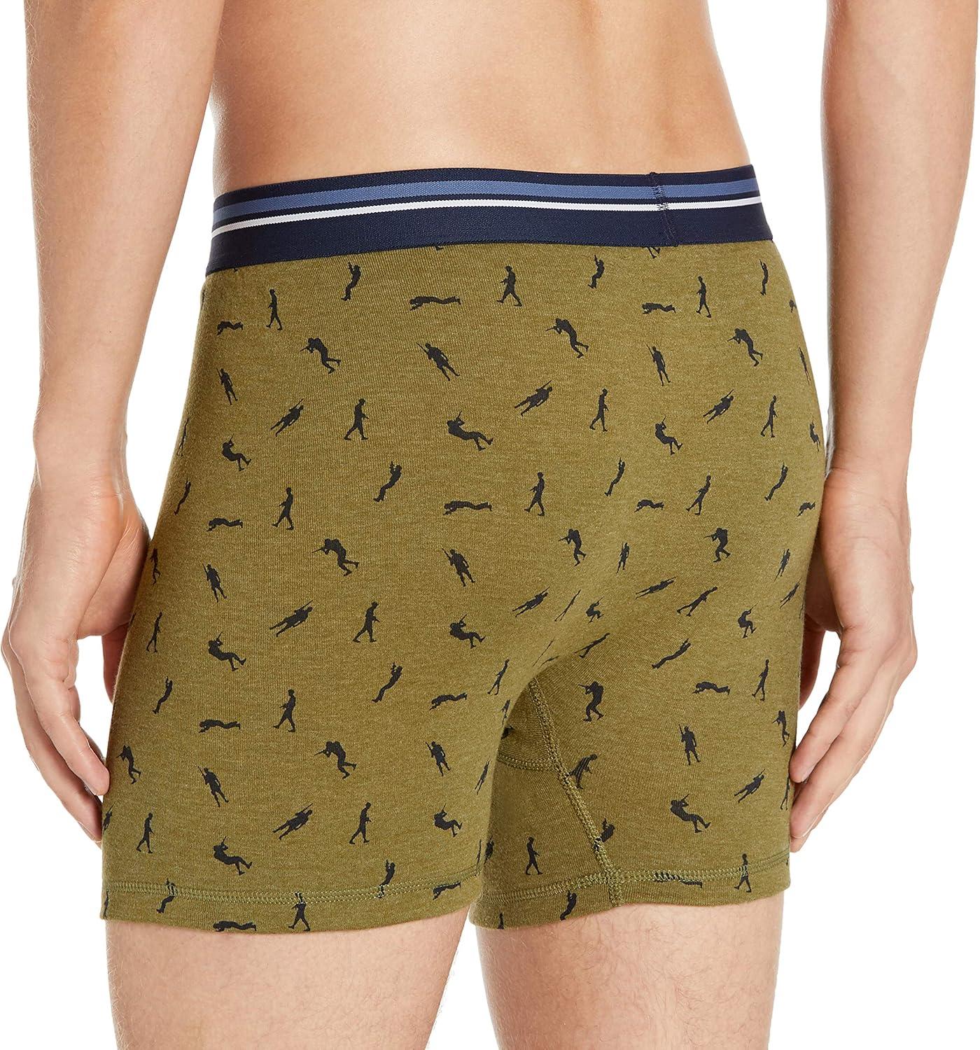 Amazon Essentials Men's Underwear Boxer Briefs, Comfortable Cotton, Tag-Free, Pack of 5(Black White Stripe/Camo/Dark Blue/Military Green/Warrior)