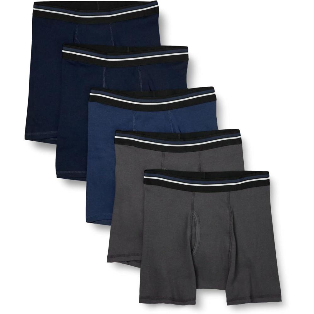 Amazon Essentials Men’s Underwear Boxer Briefs, Comfortable Cotton, Tag-Free, Pack of 5(Charcoal/Dark Blue/Dark Navy)
