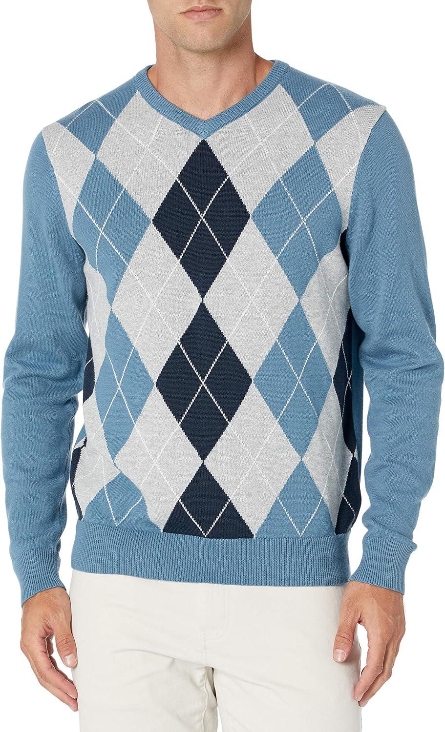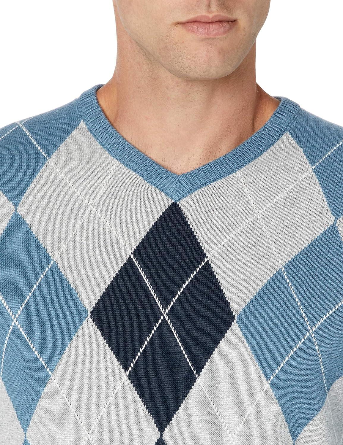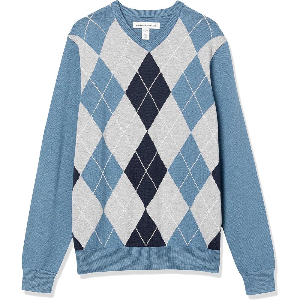 Amazon Essentials Men’s V-Neck Pullover Sweater (Available in Big & Tall)(Blue Argyle)