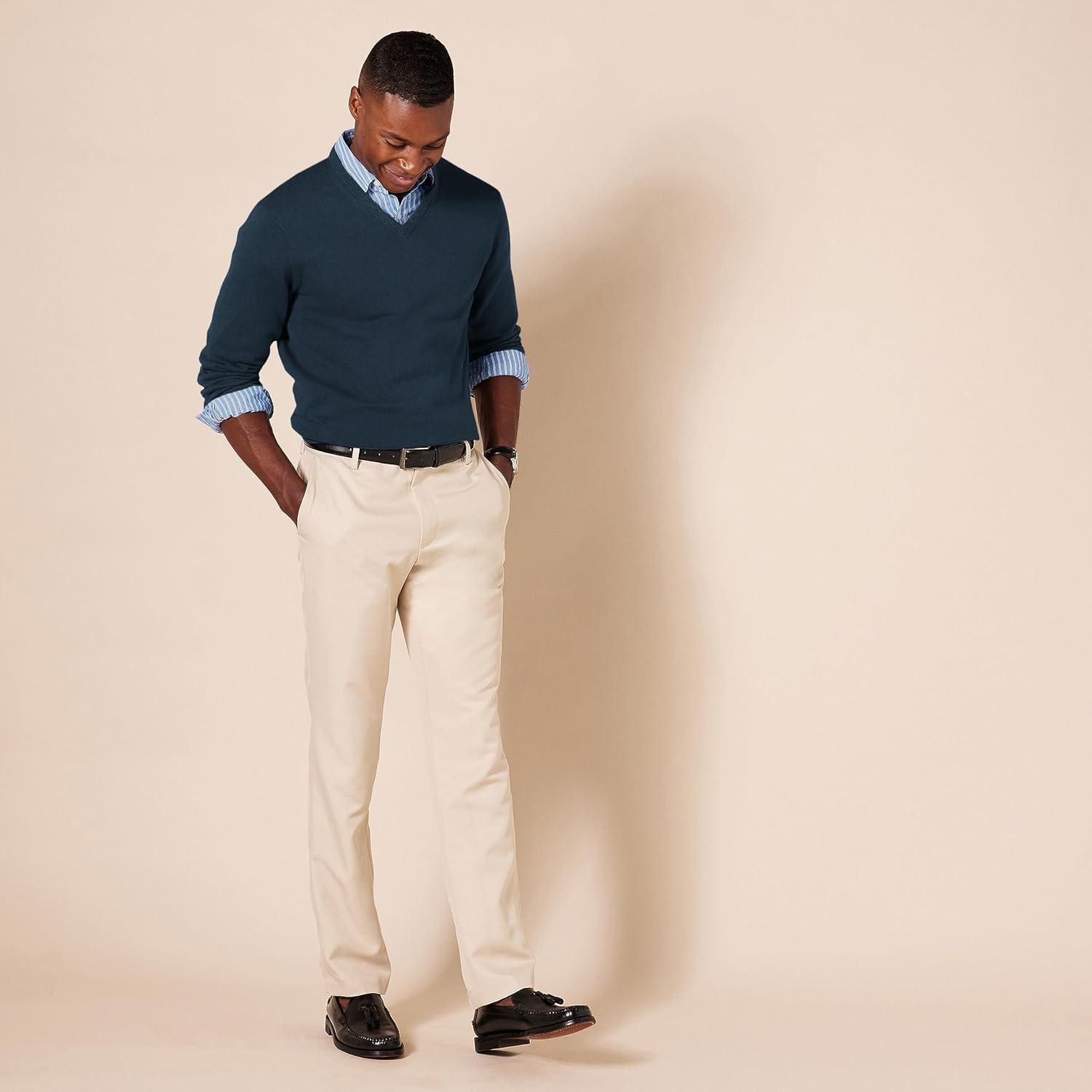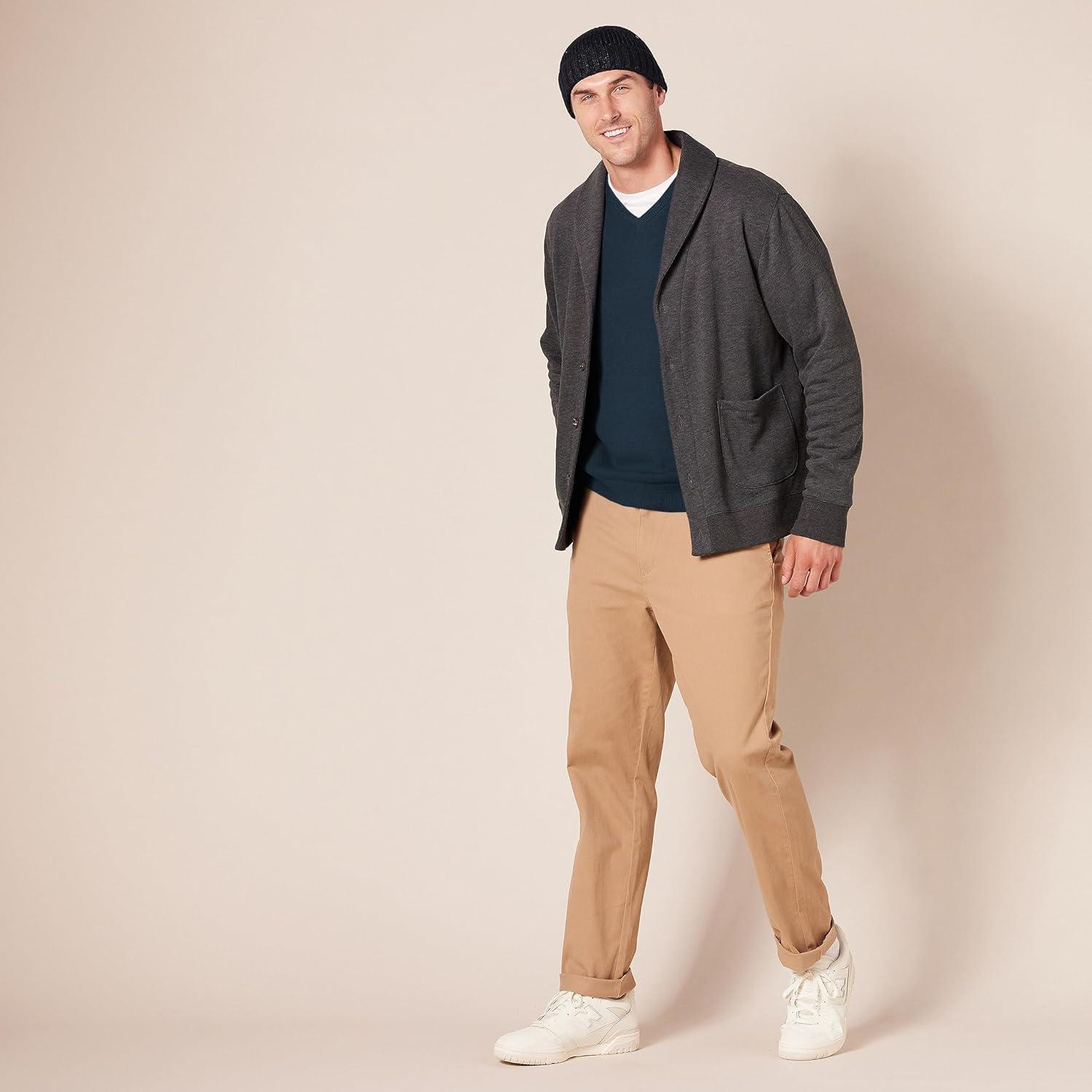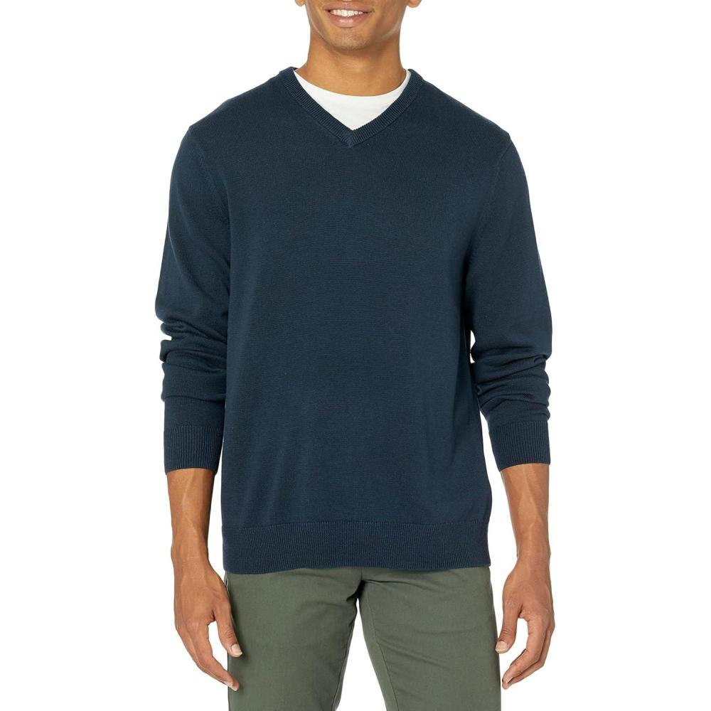 An Amazon Brand – This classic V-neck sweater features ribbing on the collar, hem, and cuffs to keep you warm