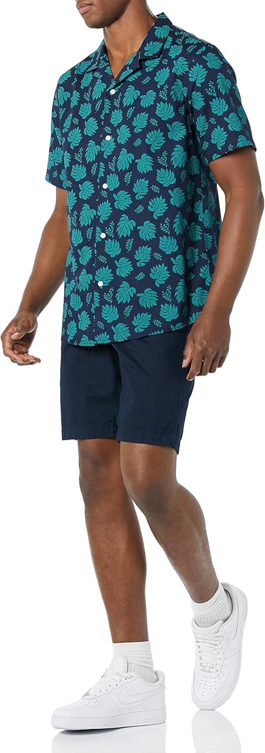 Amazon Essentials Men’s Vacation Cotton Button-Down Resort Shirt, Short Sleeve(Navy)