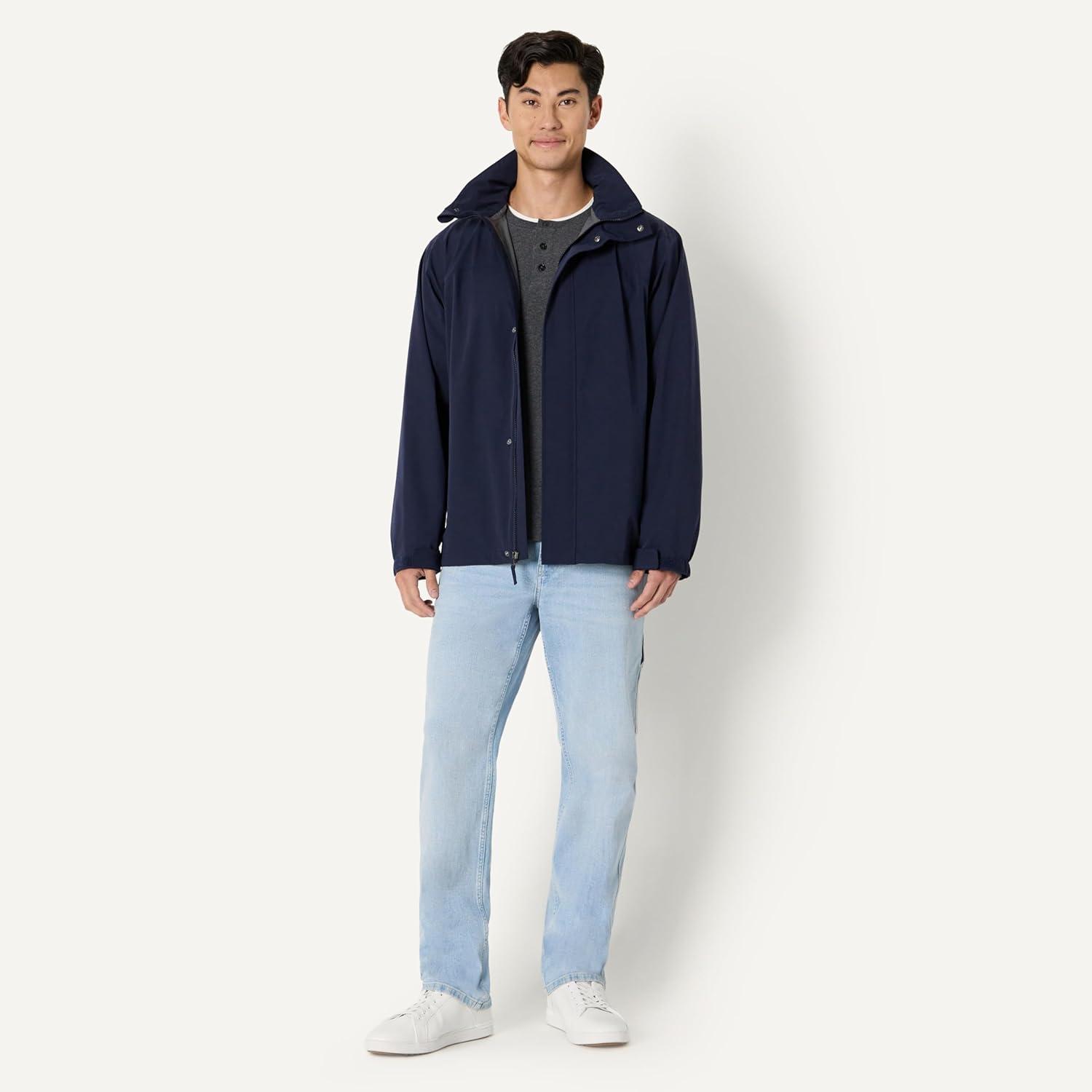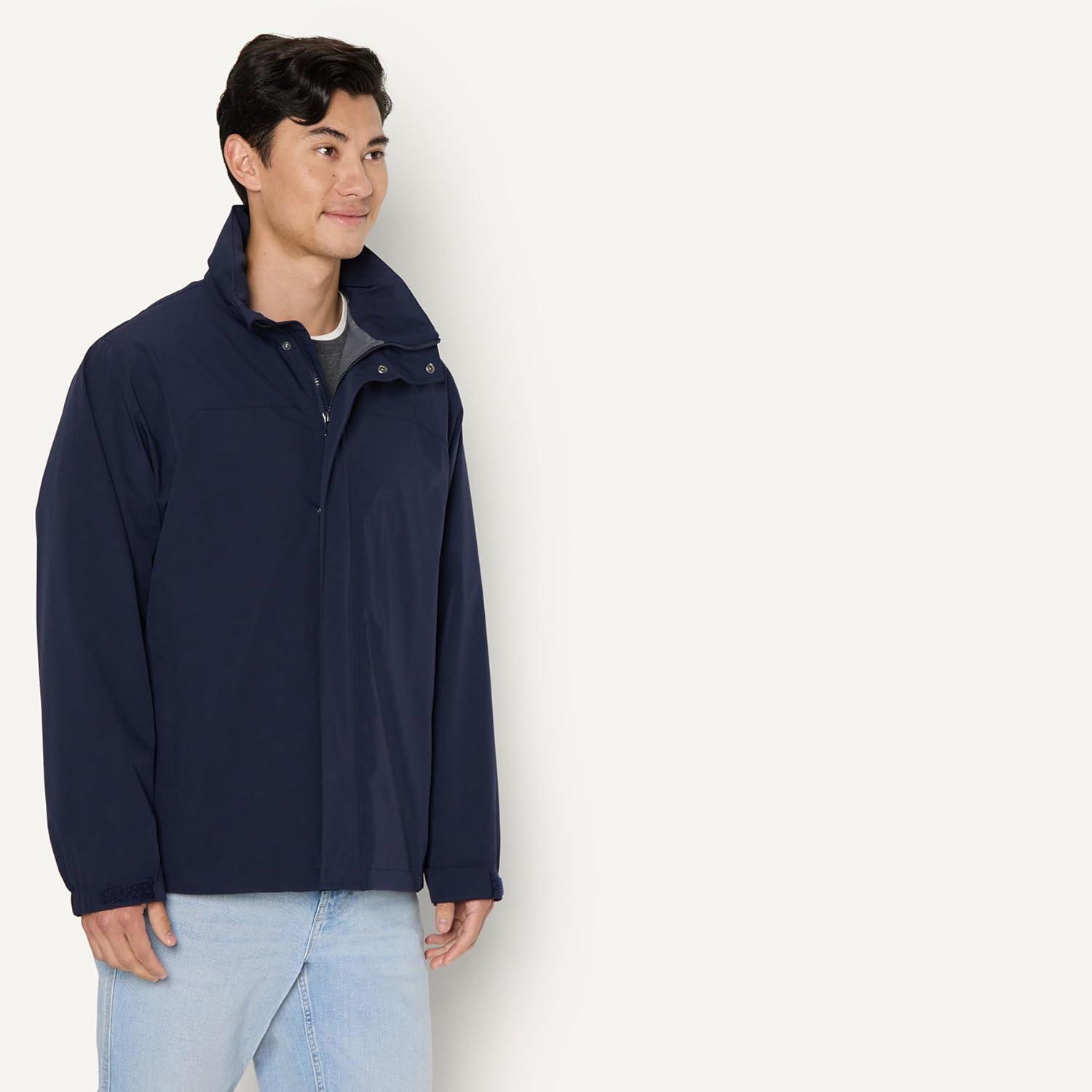 Amazon Essentials Mens Waterproof Packable Rain Jacket(Navy)