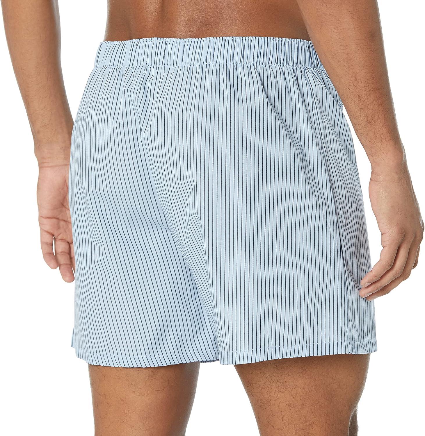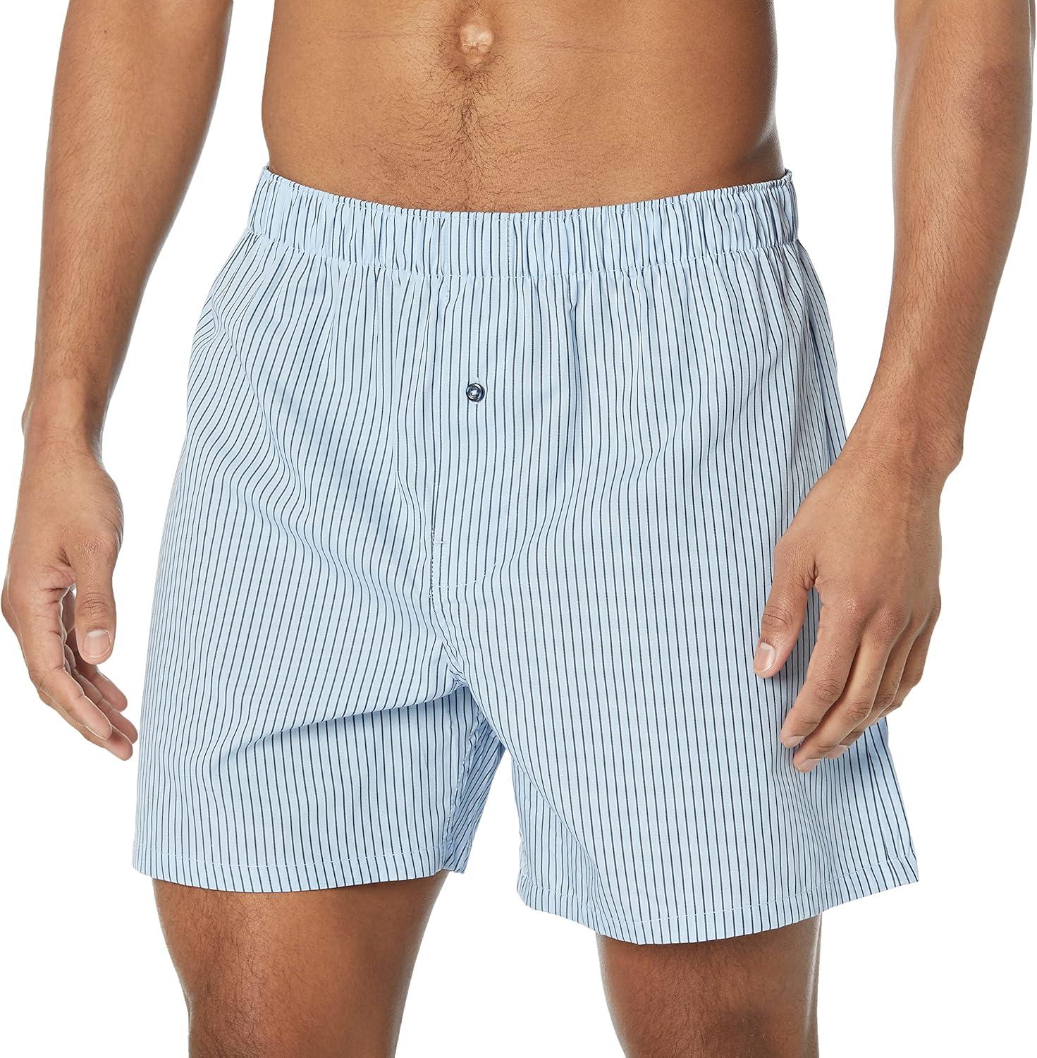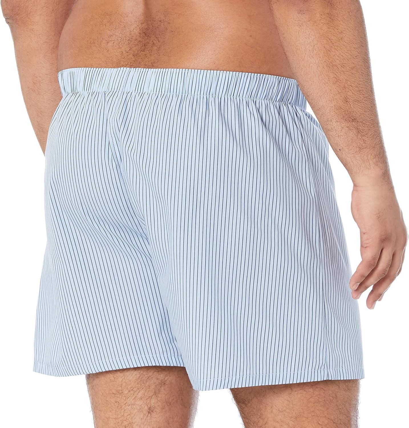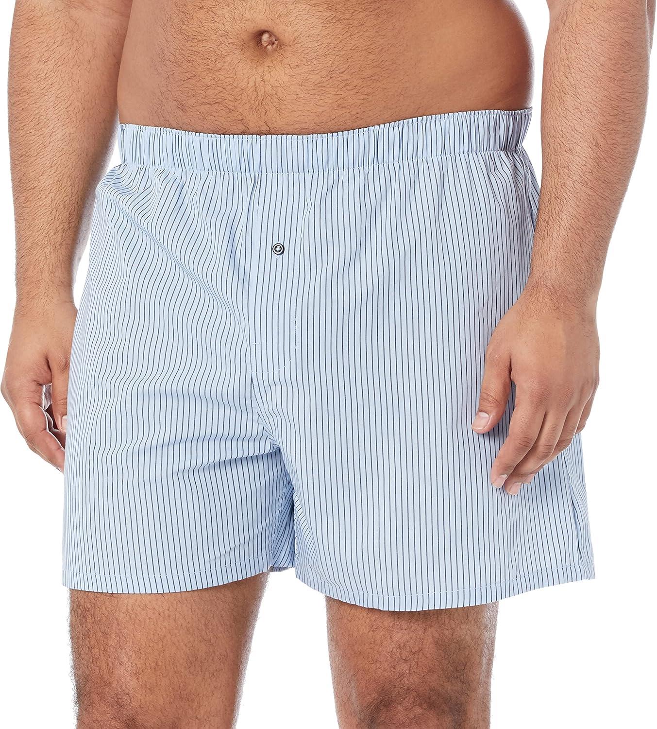 Amazon Essentials Men’s Woven Cotton Boxer Short Underwear (Available in Big &Tall), Pack of 5(Light Blue/Pale Blue Stripe/White Pinstripe)