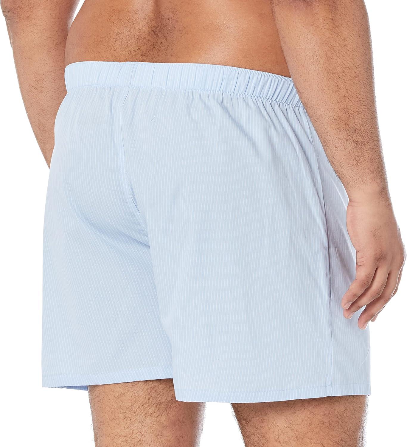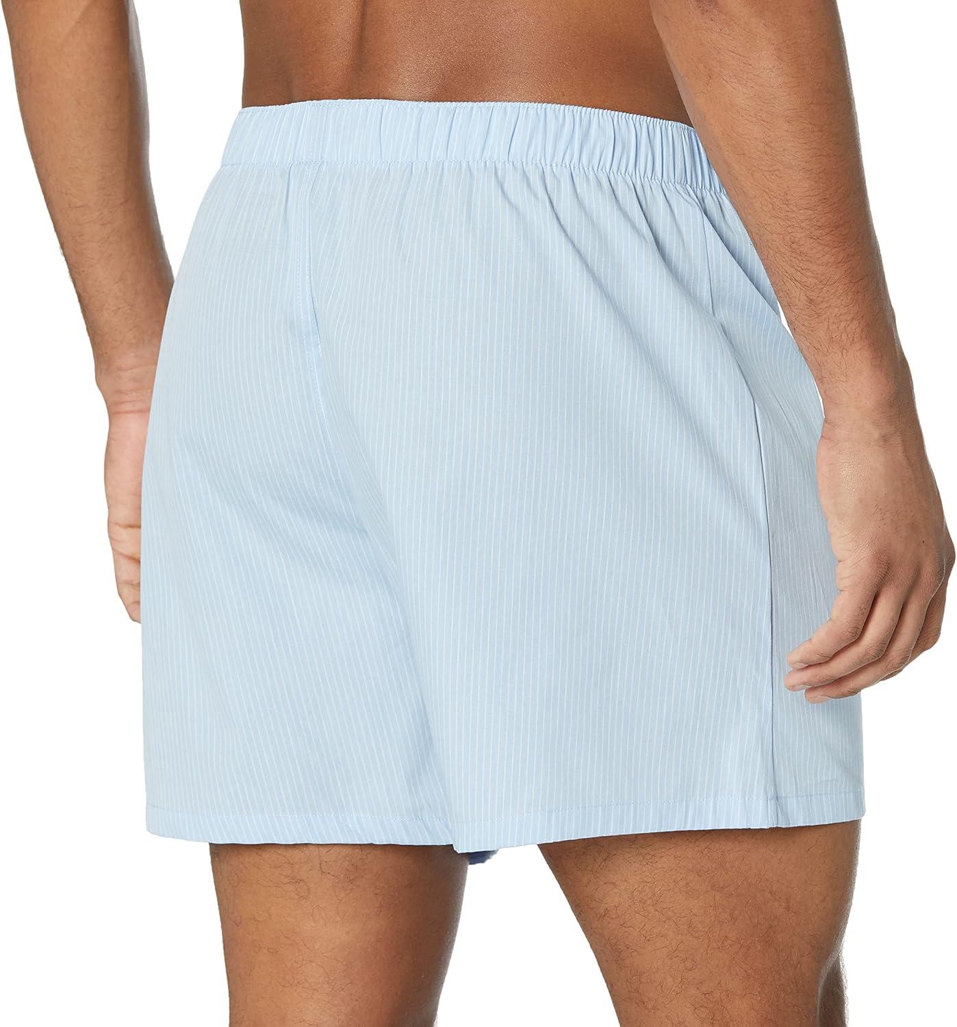 Amazon Essentials Men’s Woven Cotton Boxer Short Underwear (Available in Big &Tall), Pack of 5(Light Blue/Pale Blue Stripe/White Pinstripe)