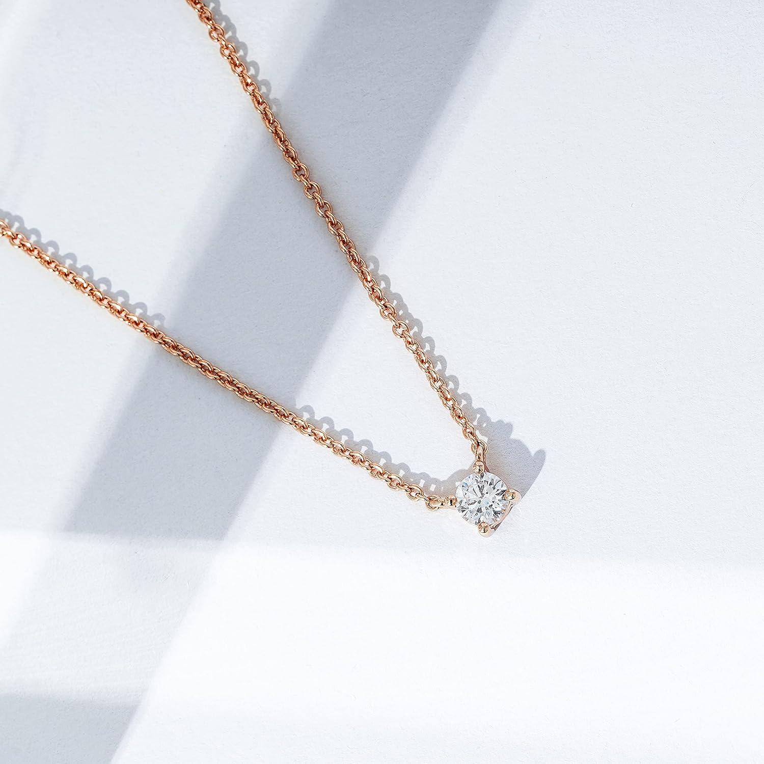 Amazon Essentials Necklace for Women, 14K Brass Chain with Cubic Zirconia Solitaire Pendant(Rose Gold)