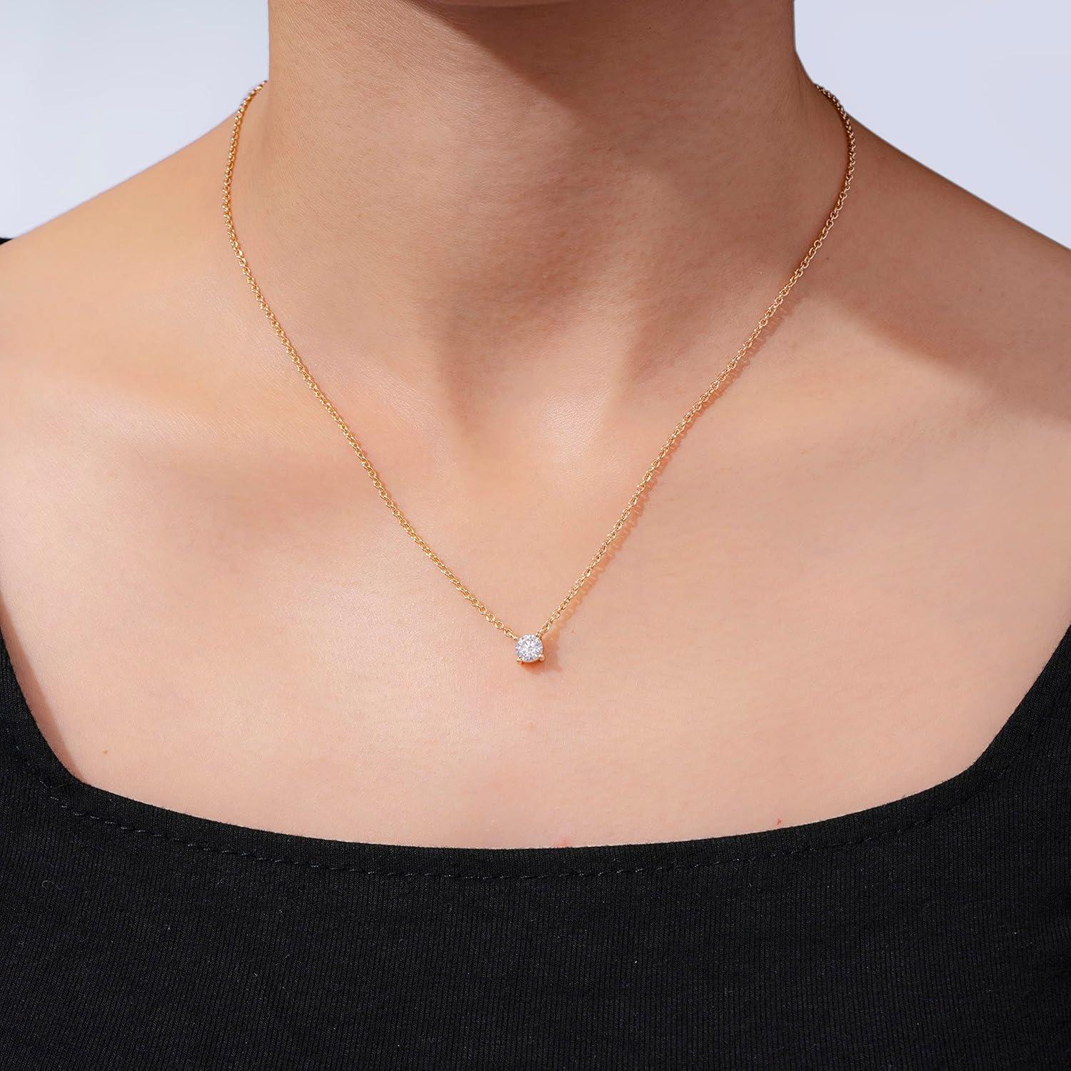 Amazon Essentials Necklace for Women, 14K Brass Chain with Cubic Zirconia Solitaire Pendant(Yellow Gold)