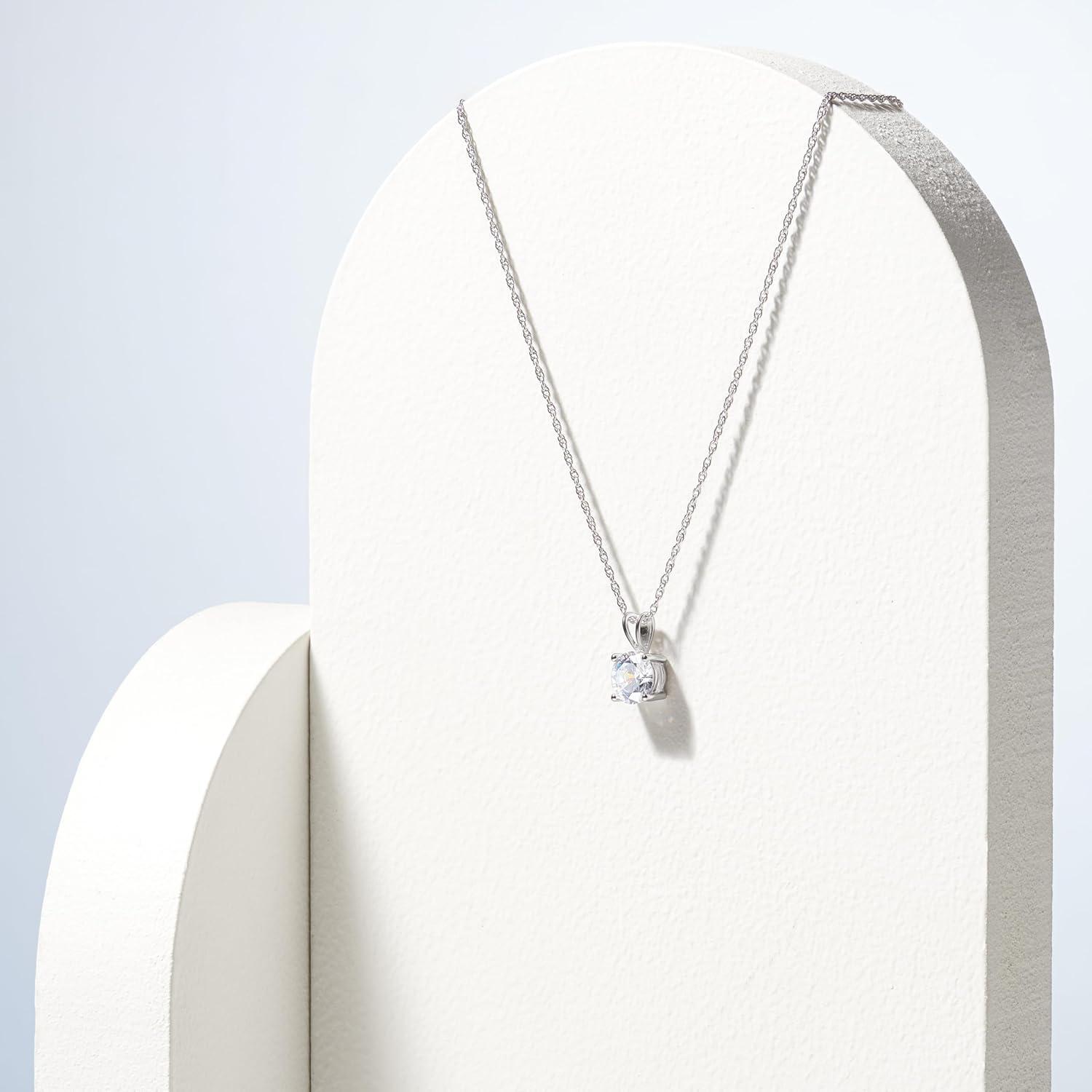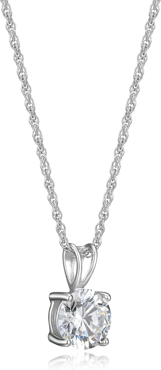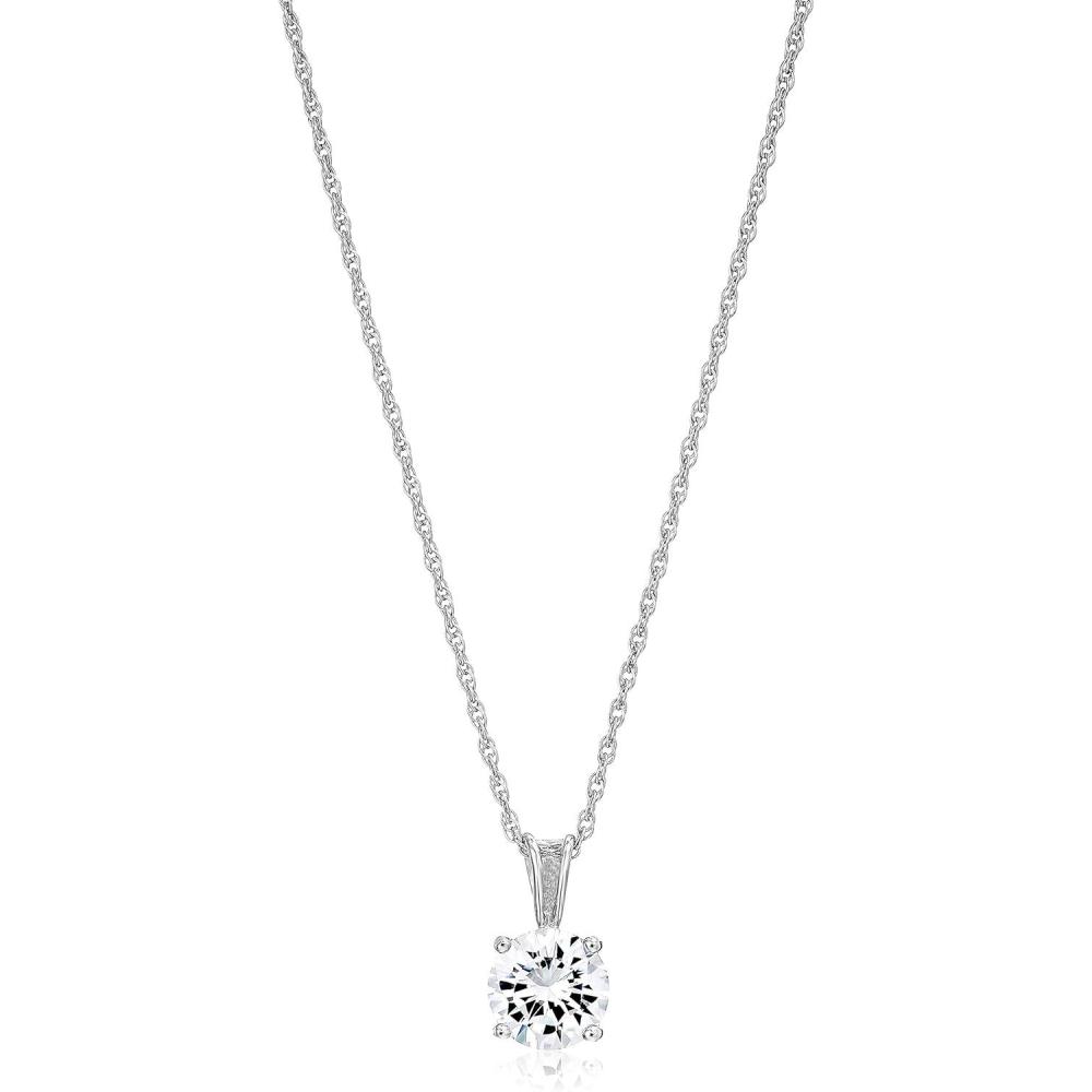 Amazon Essentials Plated Sterling Silver Cubic Zirconia Round Cut Solitaire Pendant Necklace, 18″ (previously Amazon Collection)(Platinum)