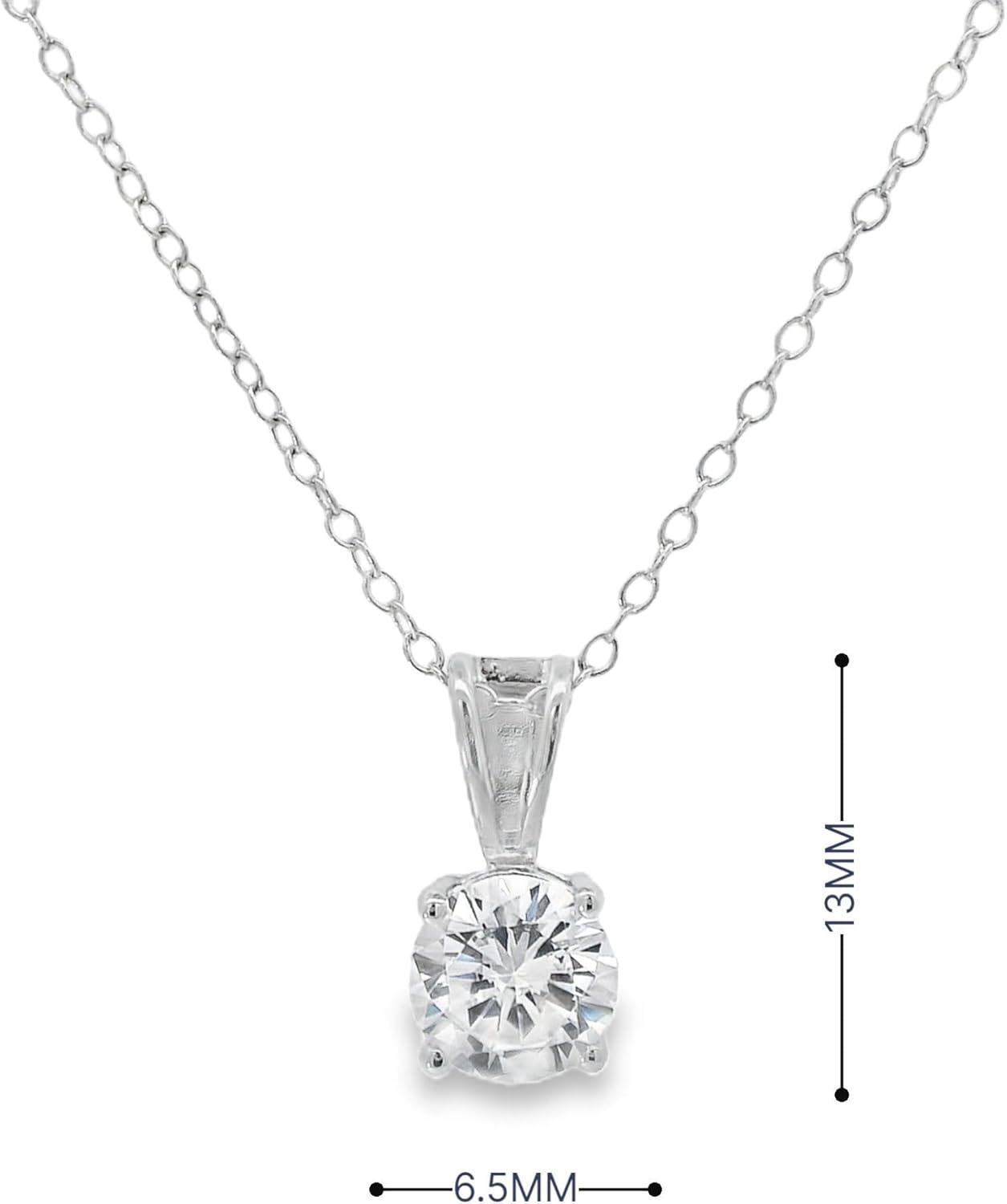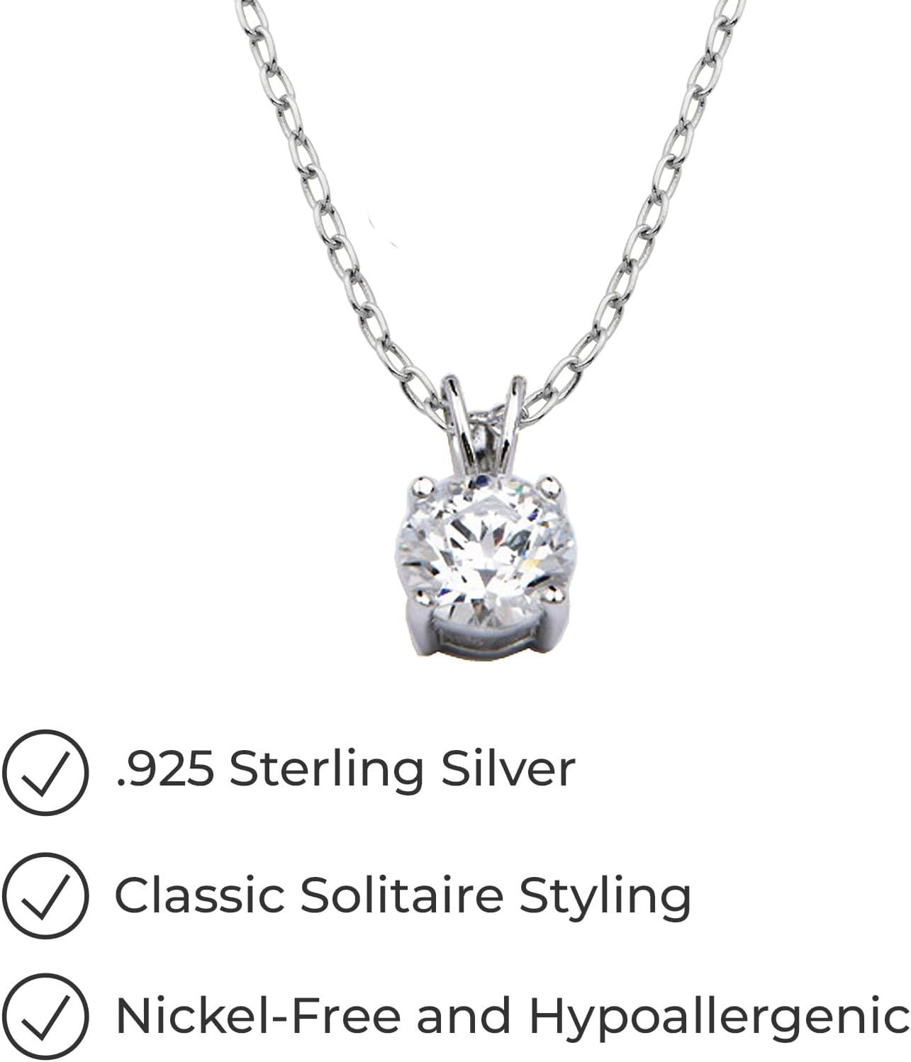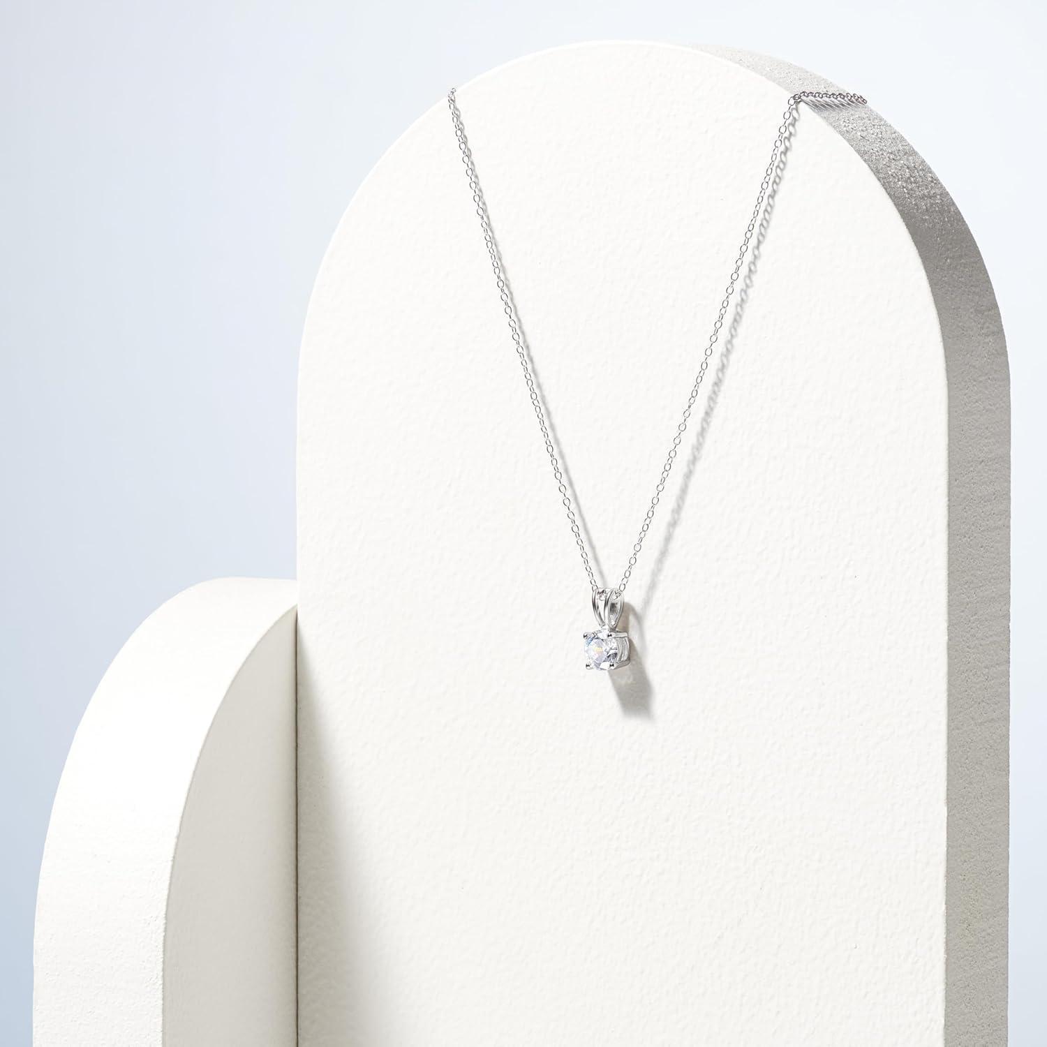 Amazon Essentials Plated Sterling Silver Cubic Zirconia Round Cut Solitaire Pendant Necklace, 18" (previously Amazon Collection)(Platinum)