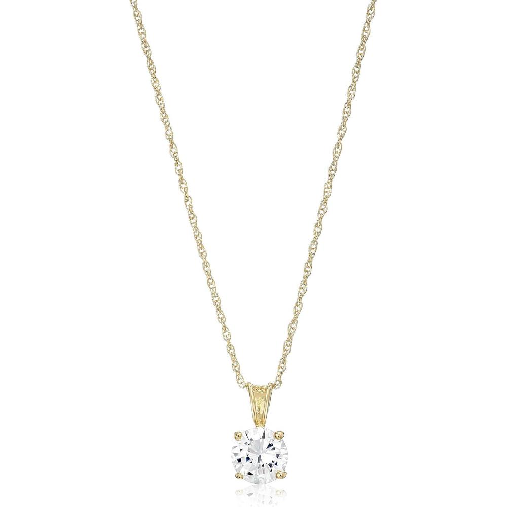 imageAmazon Essentials Plated Sterling Silver Cubic Zirconia Round Cut Solitaire Pendant Necklace 18quot previously Amazon CollectionYellow Gold