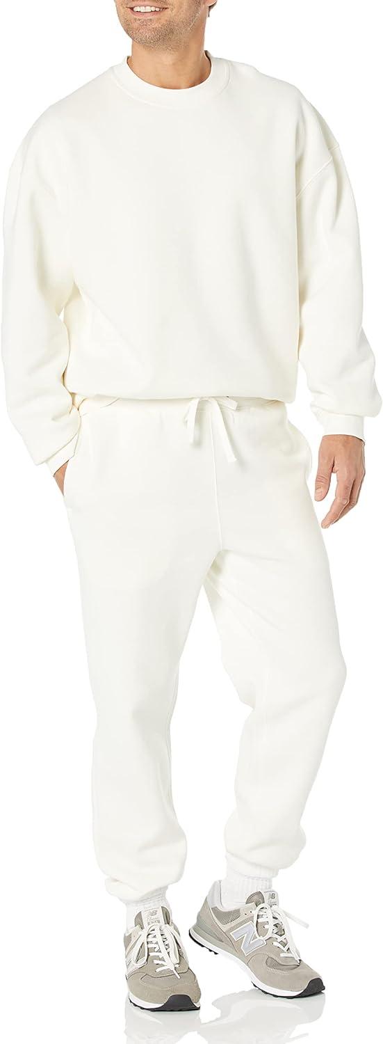 Experience comfort with Amazon Essentials Men's Relaxed-Fit Closed-Bottom Sweatpants. Made from brushed-back, mid-weight fleece, these sweatpants offer a soft feel and a relaxed fit through the hip, thigh, and leg. They feature an elastic rib waistband with metal eyelets and a drawstring for a secure fit. With two front hand pockets and two back patch pockets, these sweatpants provide practicality alongside comfort. The straight-leg fit with elasticated cuffs ensures all-day ease.