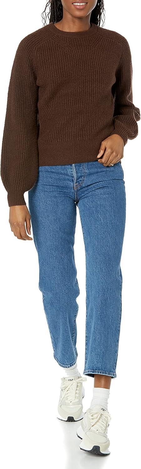 Amazon Essentials Ribbed Long Sleeve Sweaters for Women, Crewneck(Espresso)
