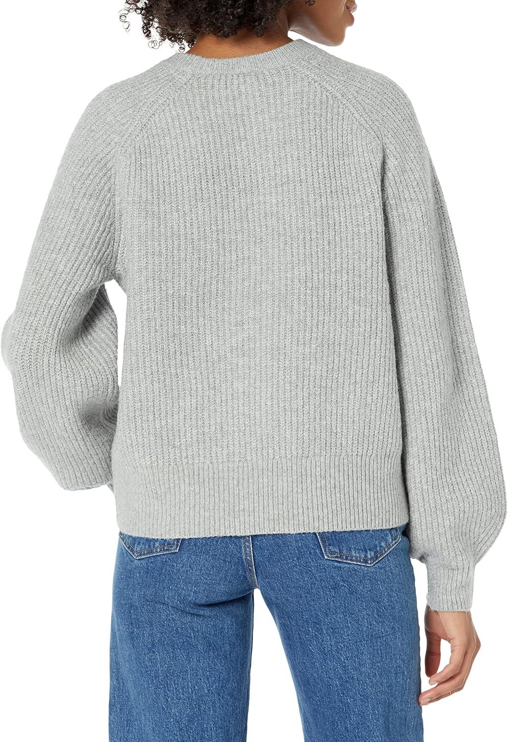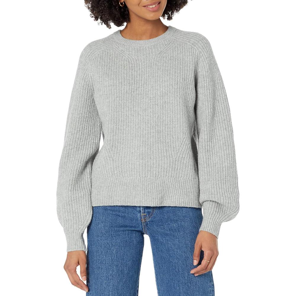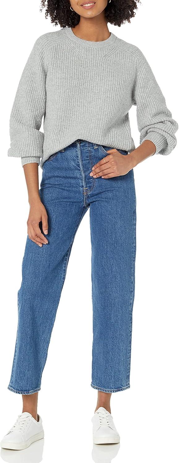 Amazon Essentials Ribbed Long Sleeve Sweaters for Women, Crewneck(Light Grey Heather)