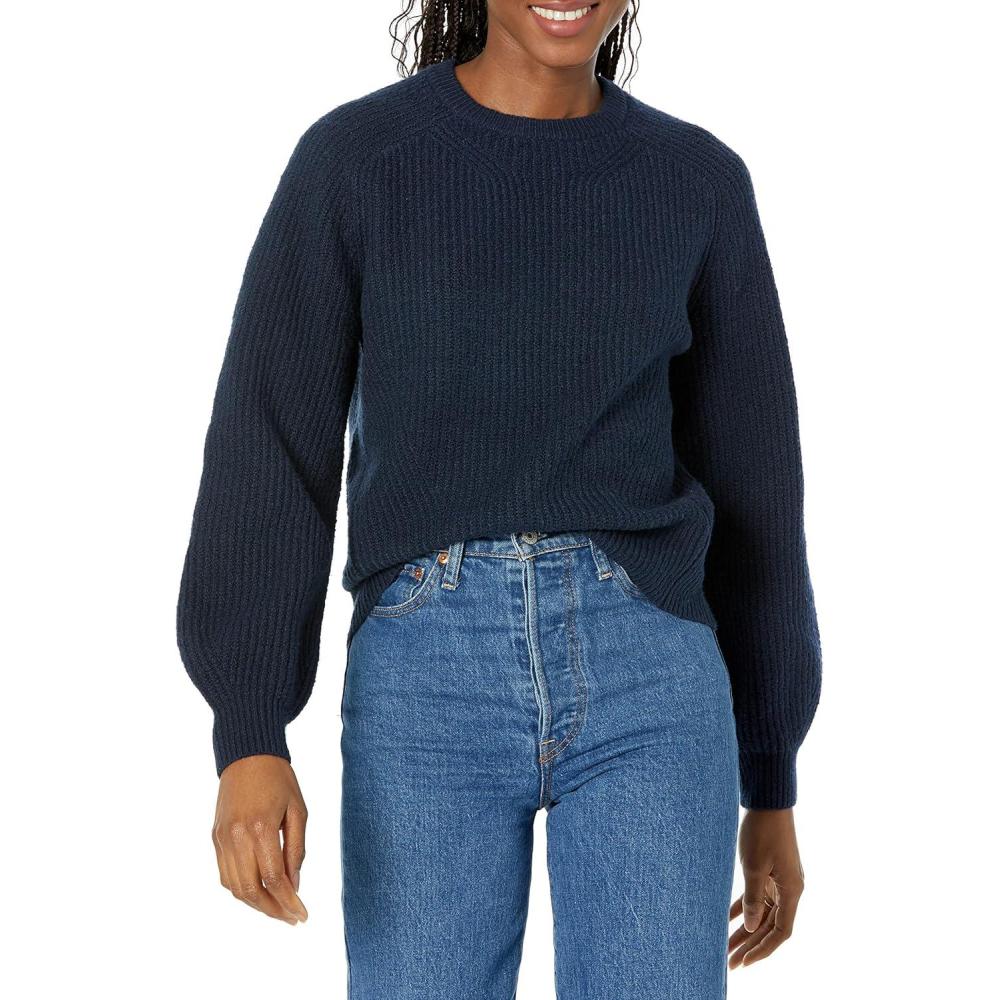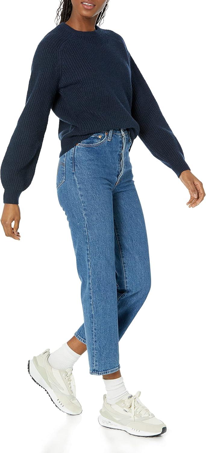 Amazon Essentials Ribbed Long Sleeve Sweaters for Women, Crewneck(Navy)