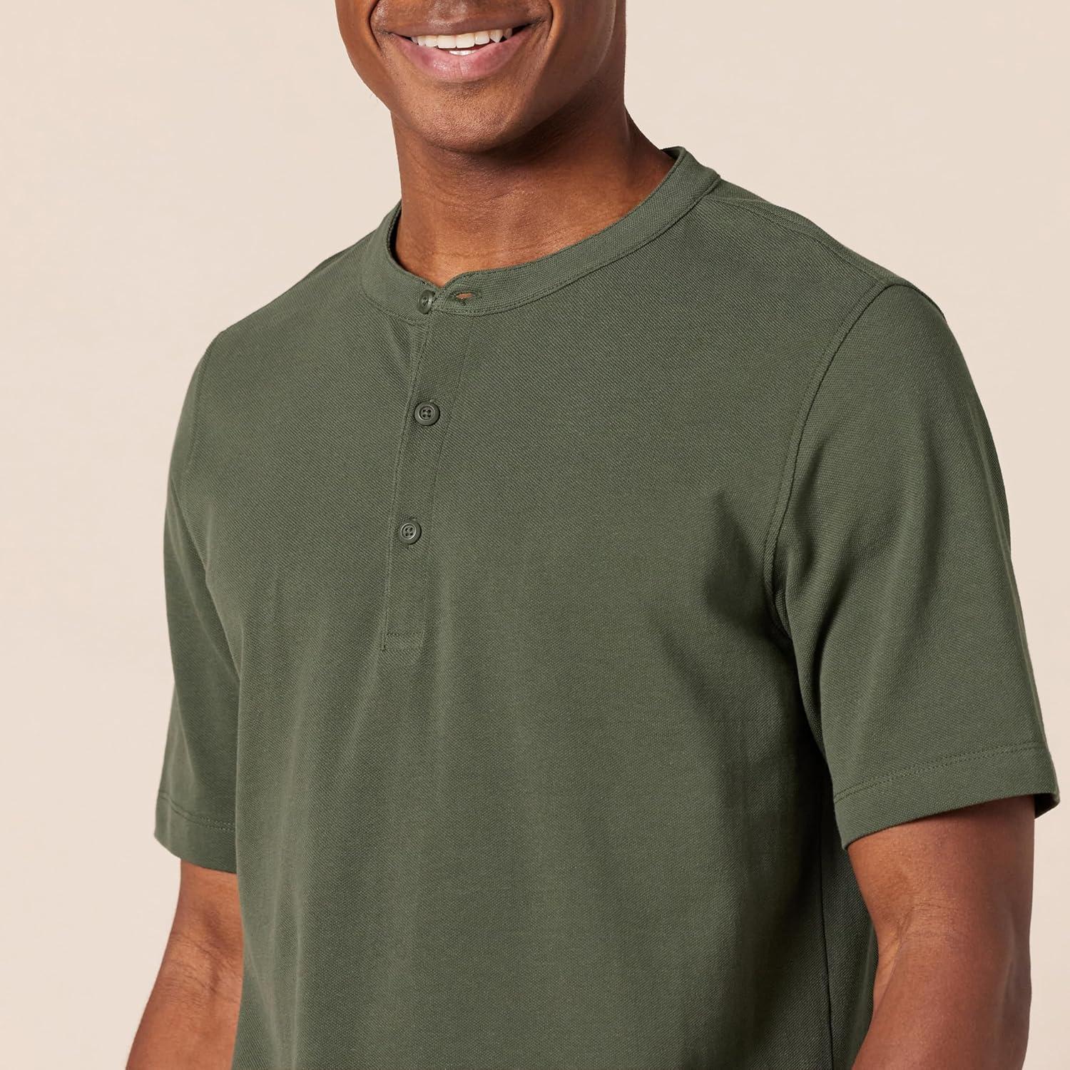 imageAmazon Essentials Short Sleeve Henley Shirt for Men  RegularFit Pique Available in Big ampamp Tall Pack of 2BlackOlive