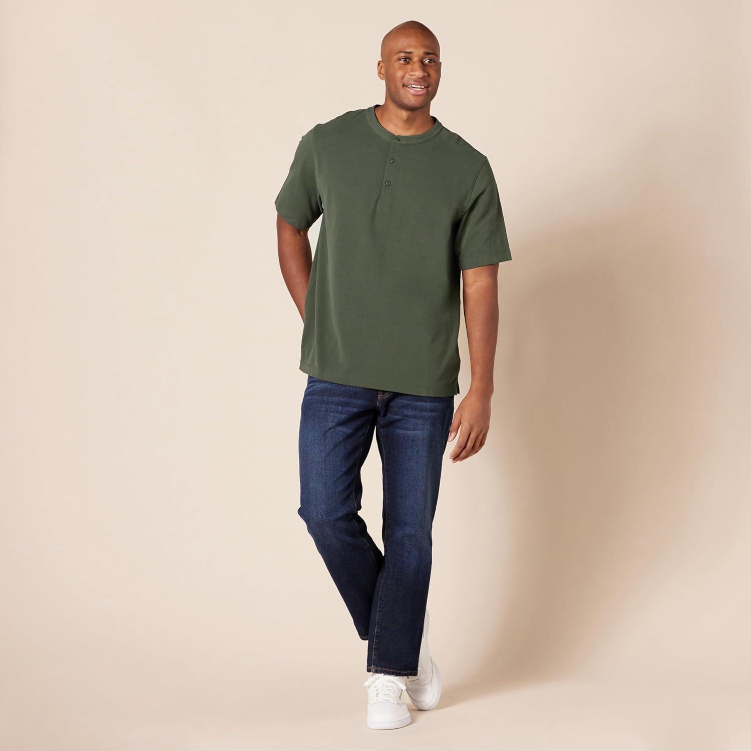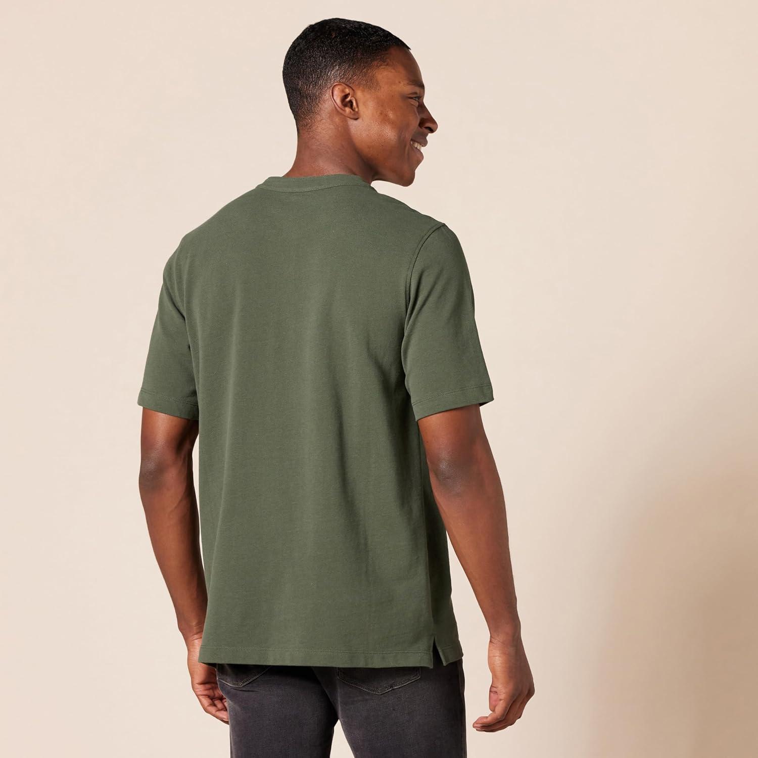 Amazon Essentials Short Sleeve Henley Shirt for Men – Regular-Fit Pique (Available in Big & Tall), Pack of 2(Black/Olive)