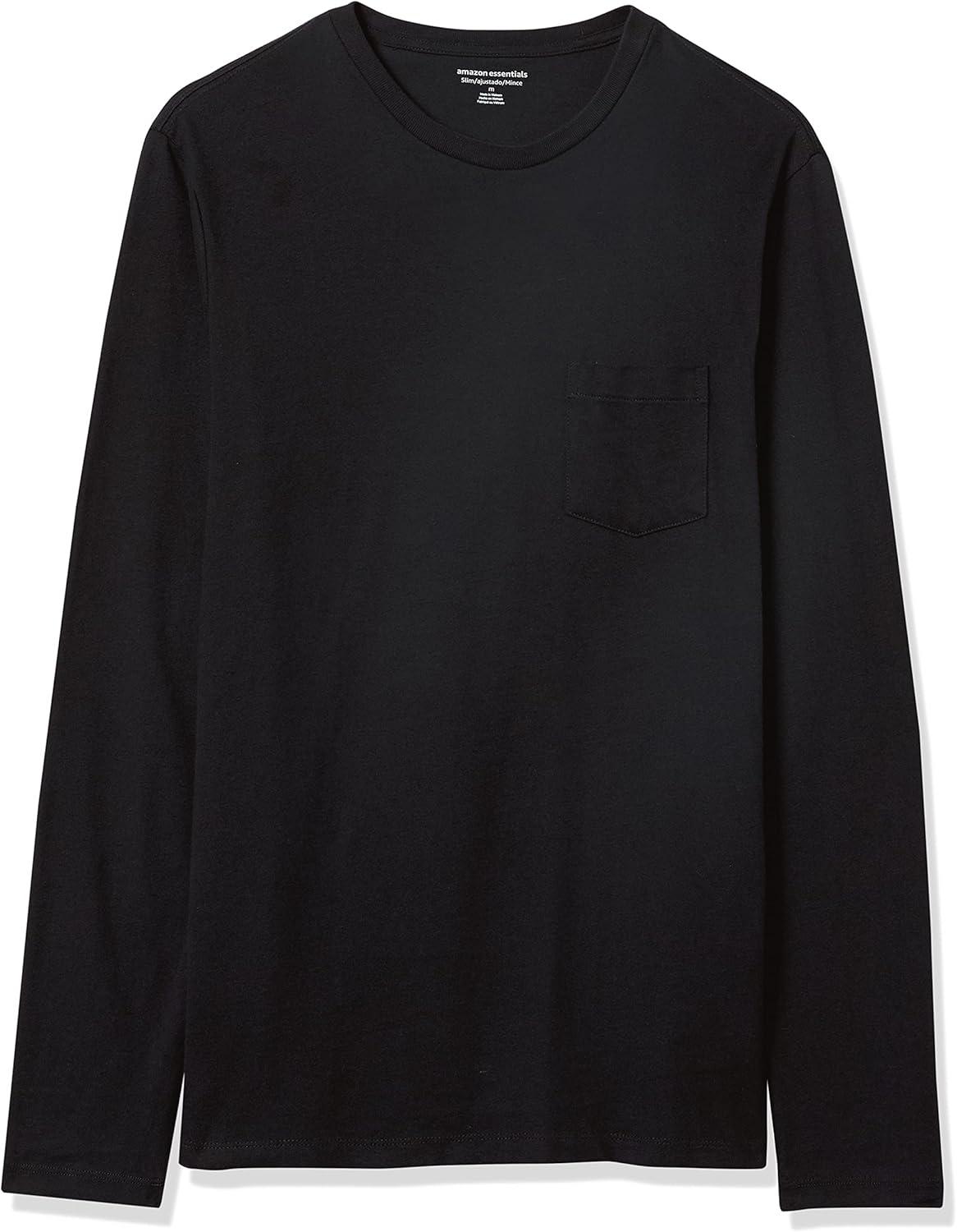 Amazon Essentials Slim-Fit Long Sleeve Shirt for Men, Pocket and No Pocket Styles(Black)