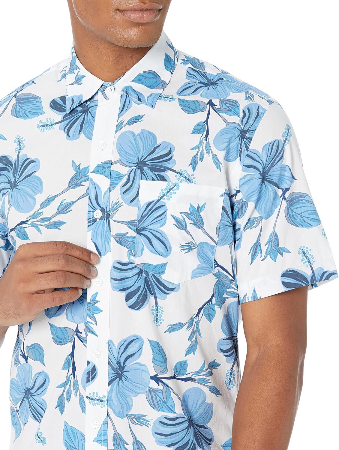 Amazon Essentials Slim-Fit Men's Short Sleeve Button Down Shirt(Blue Floral Print)