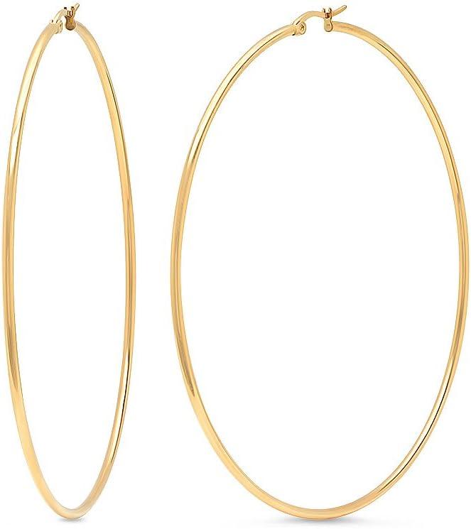 Amazon Essentials Stainless Steel Rounded Tube Hoop Earrings (50mm), (previously Amazon Collection)(Stainless Steel)