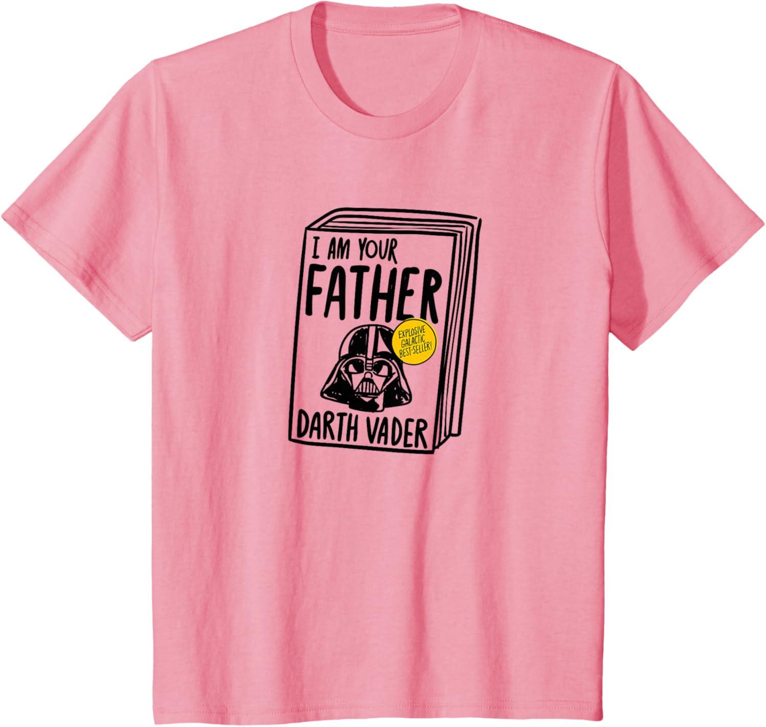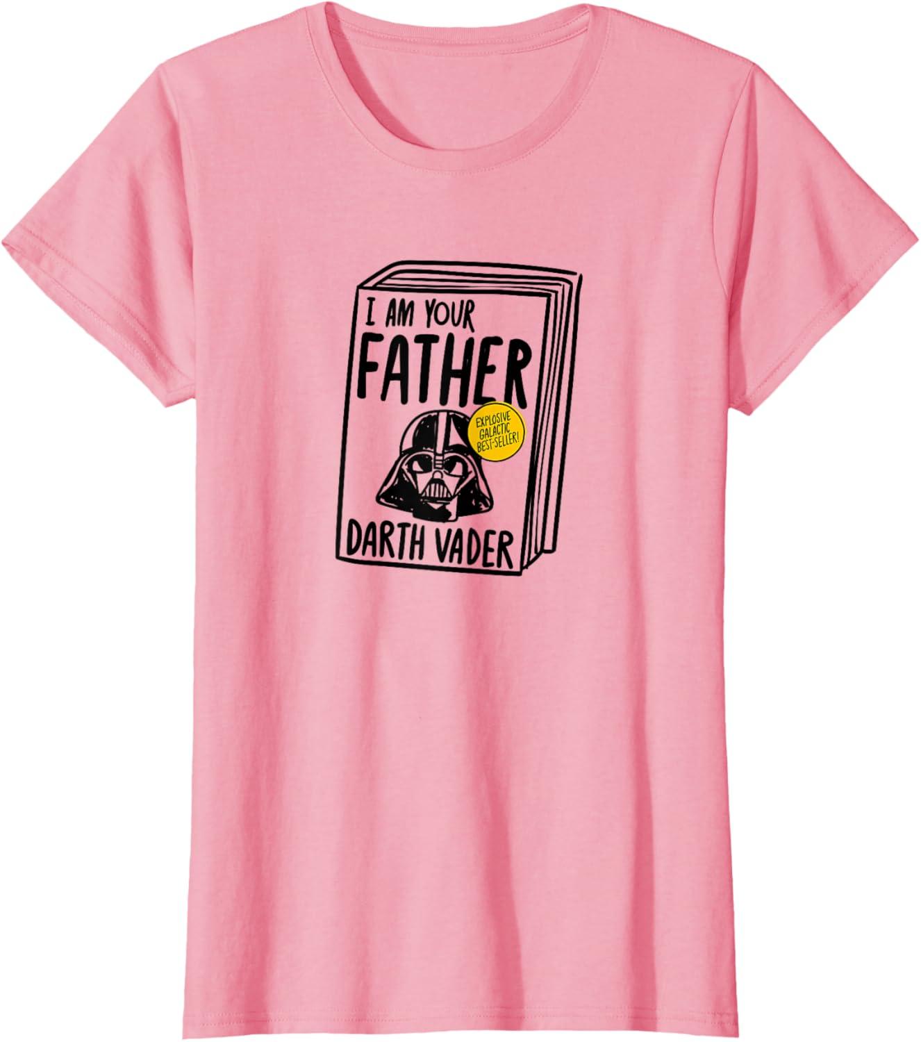 Amazon Essentials Star Wars Men’s Darth Vader Book I Am Your Father T-Shirt, White, Small(Pink)