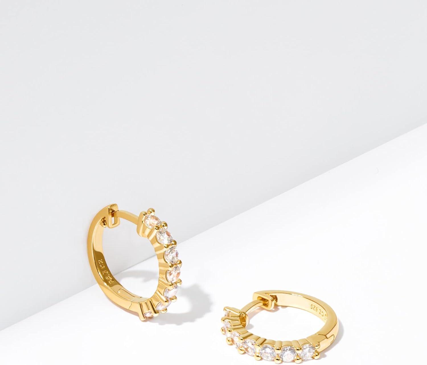 Amazon Essentials Sterling Silver Hinged Huggie Hoop Earrings(Yellow Gold)