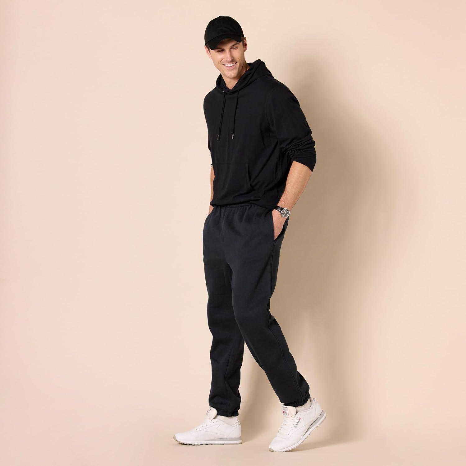 Amazon Essentials Sweatpants for Men, Fleece, Closed Bottom (Available in Big and Tall)(Black)