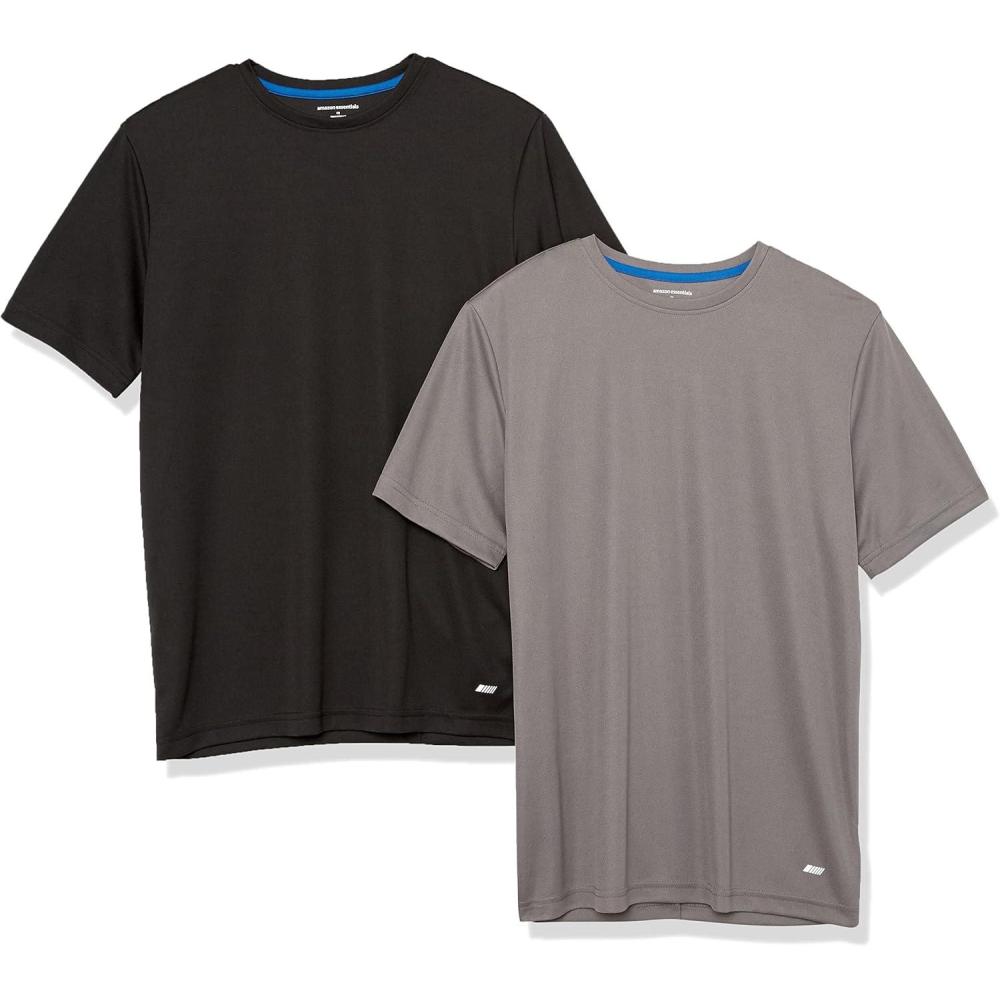 Amazon Essentials T-Shirts for Men, Active Performance Tech, Available in Big & Tall, Pack of 2(Black/Medium Grey)