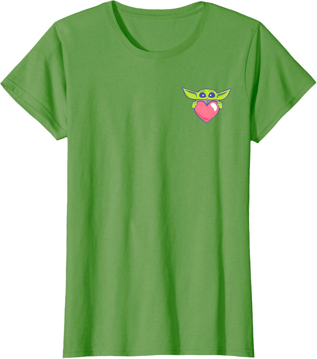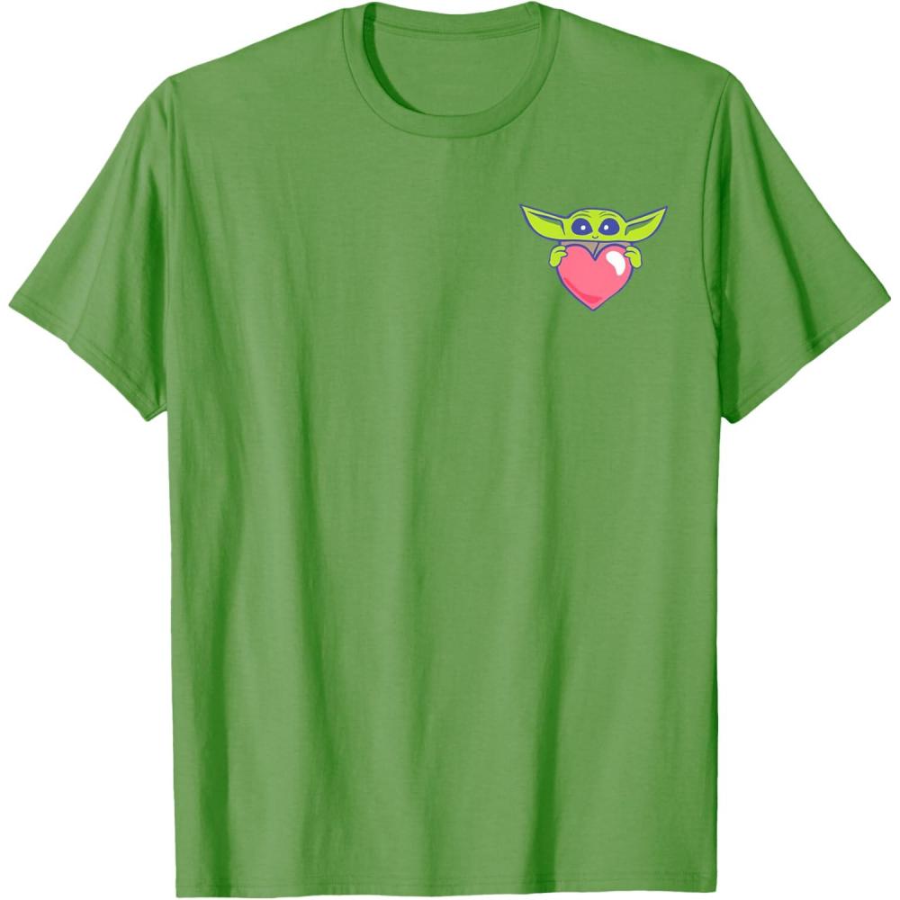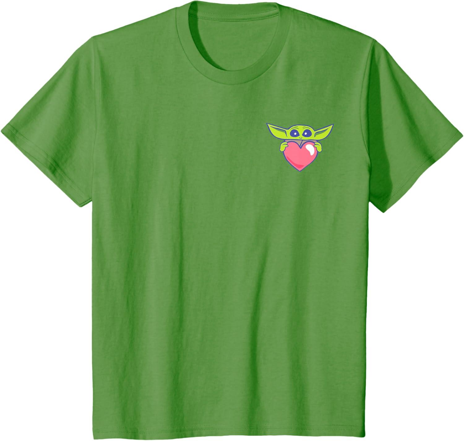 Amazon Essentials The Mandalorian Grogu Holding a Valentine’s Heart T-Shirt(Grass Green)