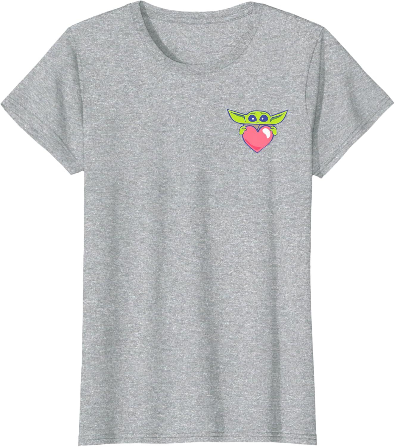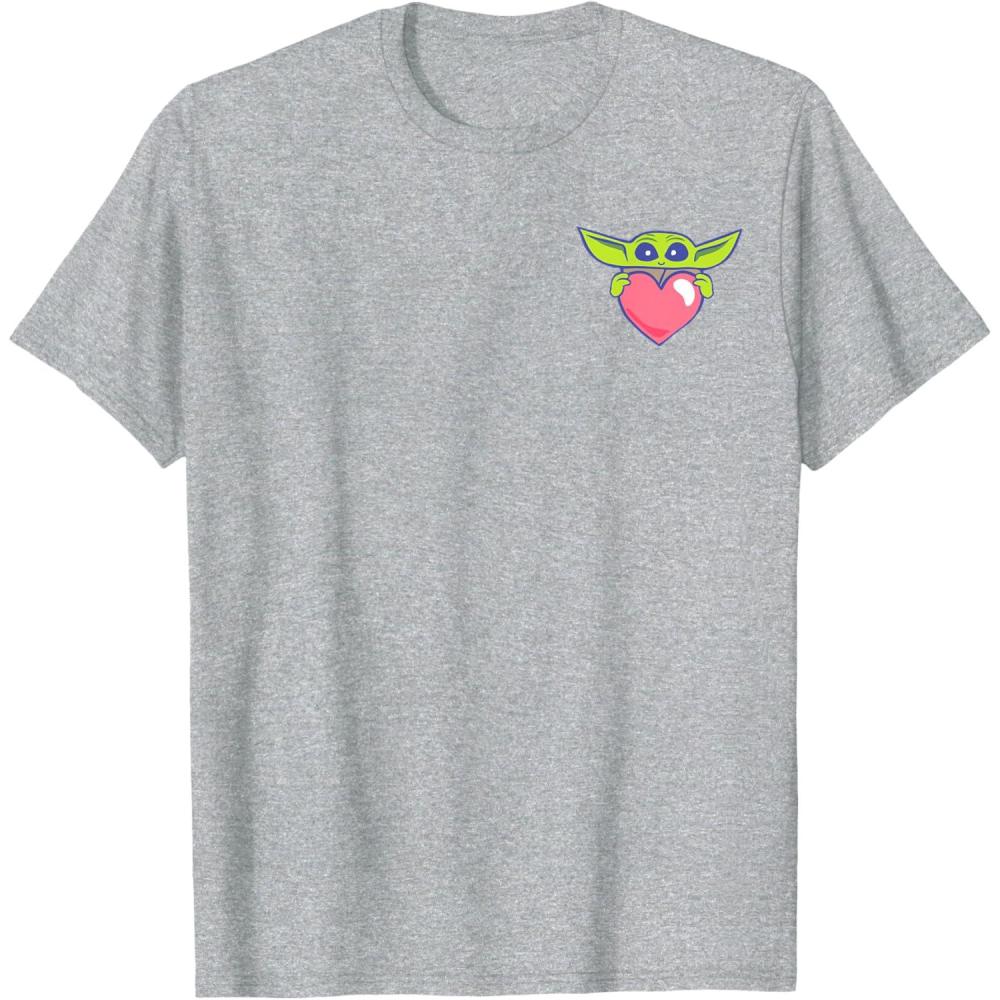Amazon Essentials The Mandalorian Grogu Holding a Valentine’s Heart T-Shirt(Heather Grey)