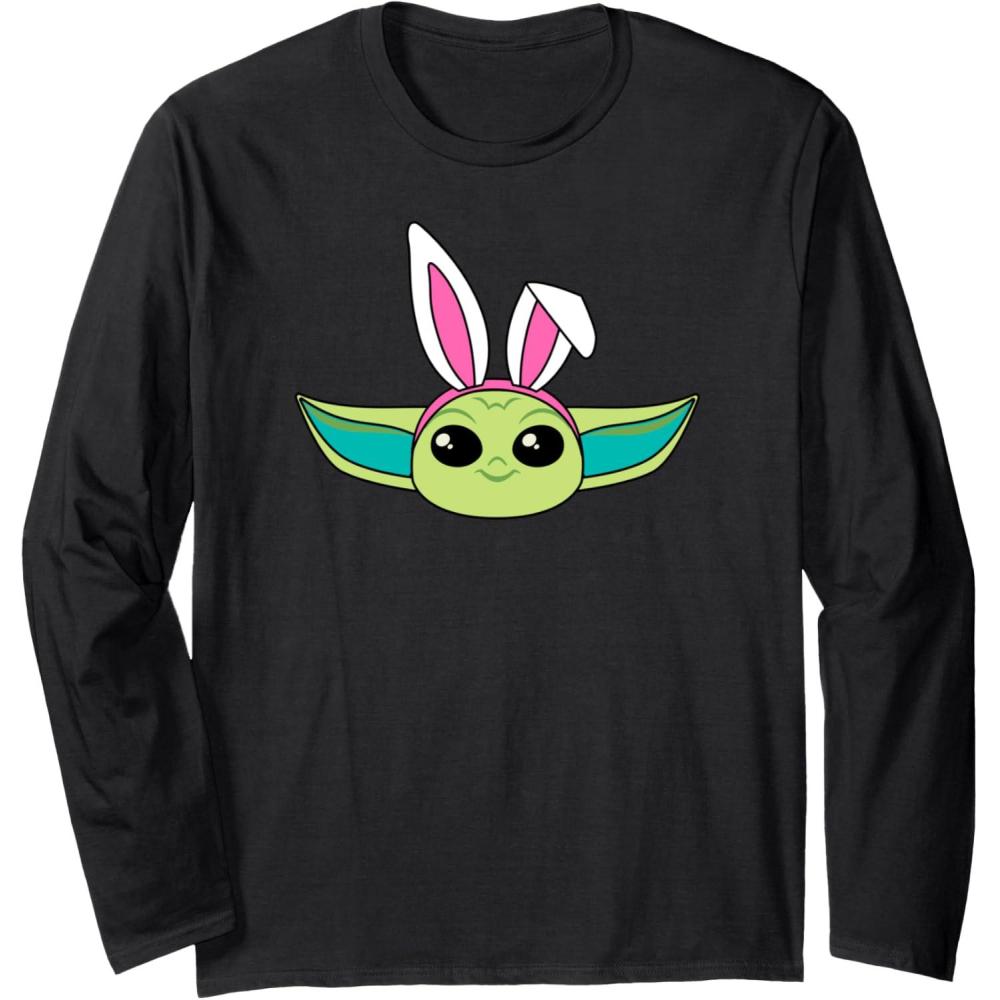 Amazon Essentials The Mandalorian Grogu Spring Easter Bunny Ears Long Sleeve T-Shirt(Black)
