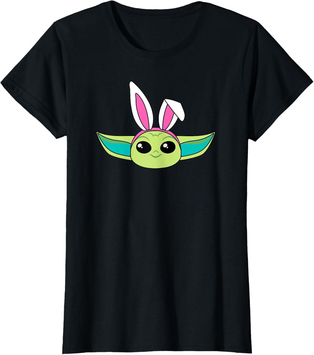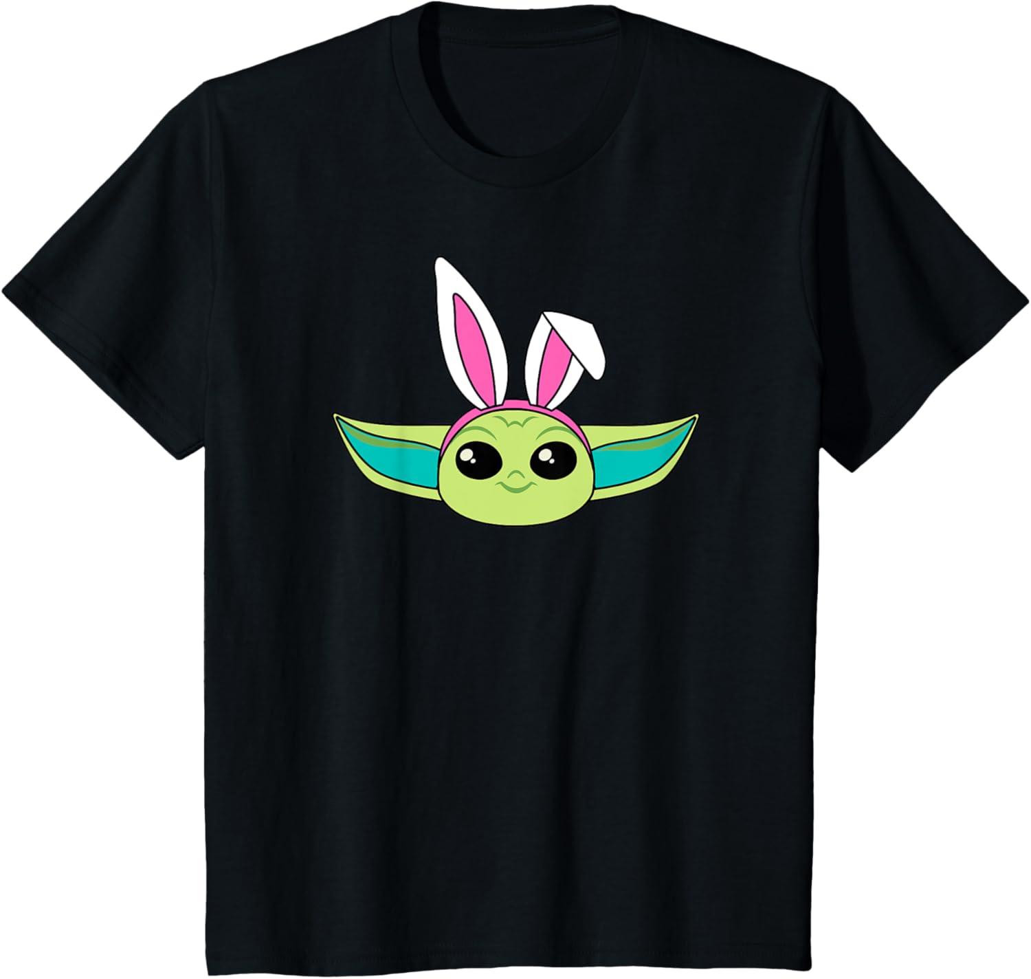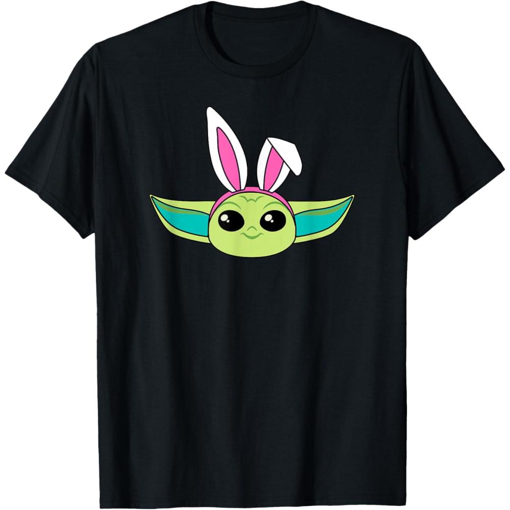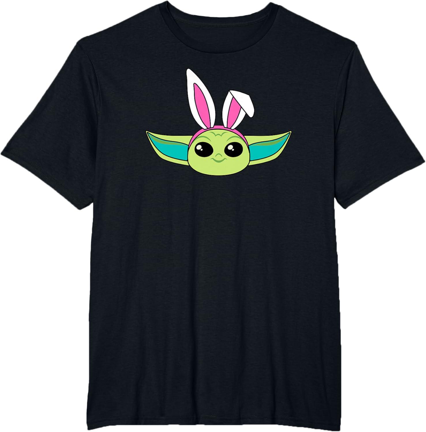 Amazon Essentials The Mandalorian Grogu Spring Easter Bunny Ears T-Shirt(Black)