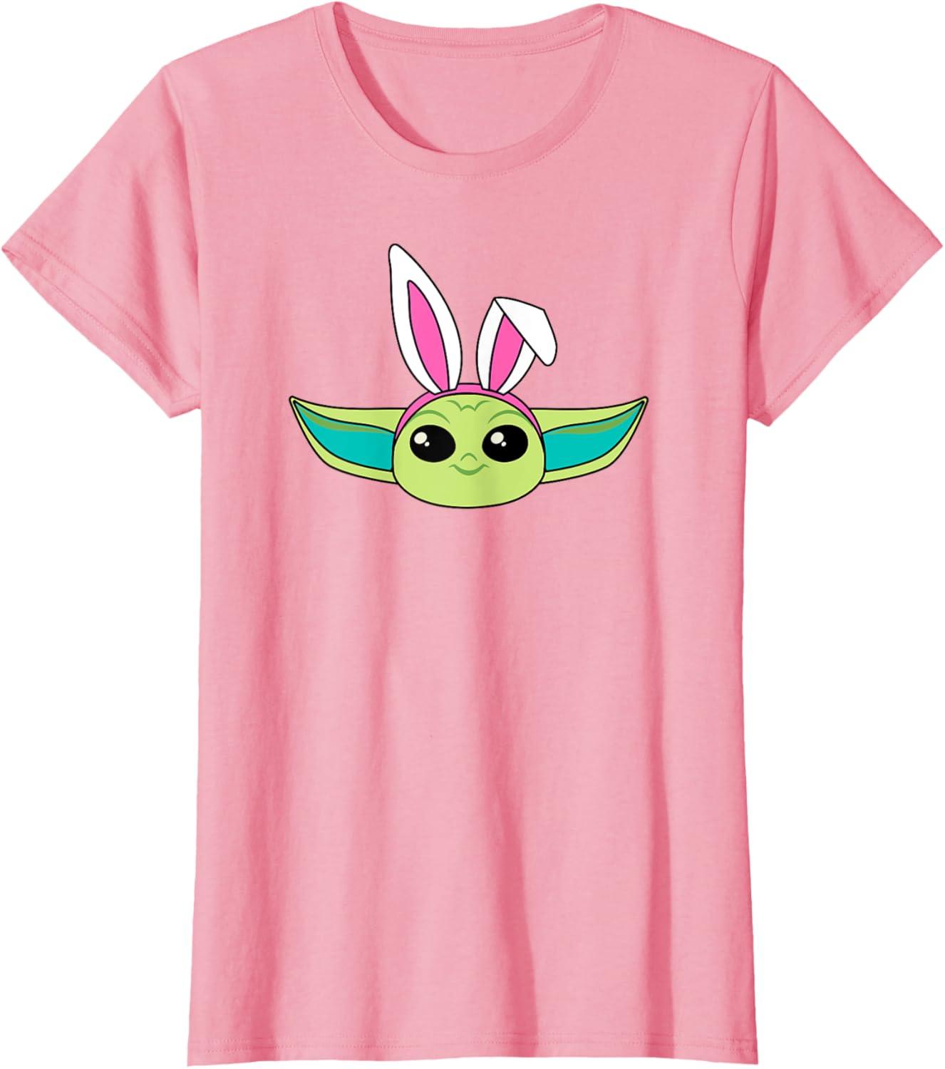 Amazon Essentials The Mandalorian Grogu Spring Easter Bunny Ears T-Shirt(Pink)