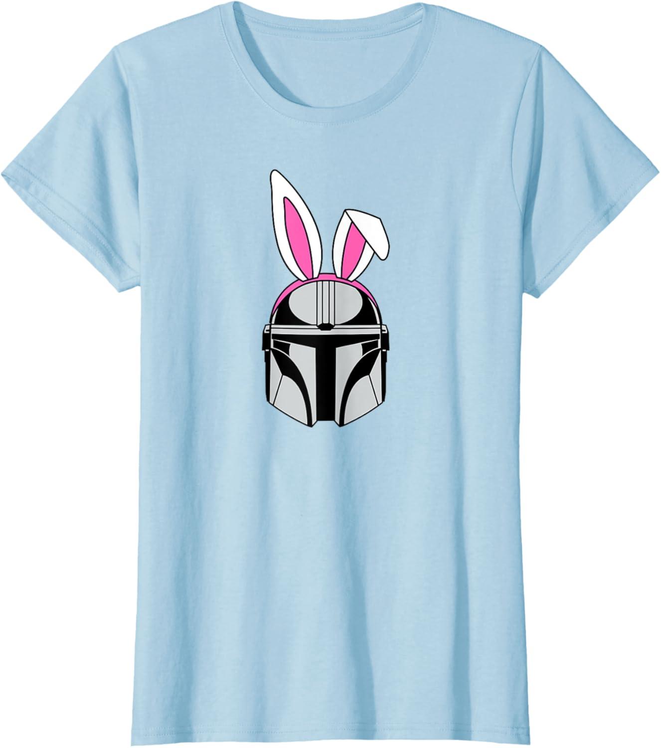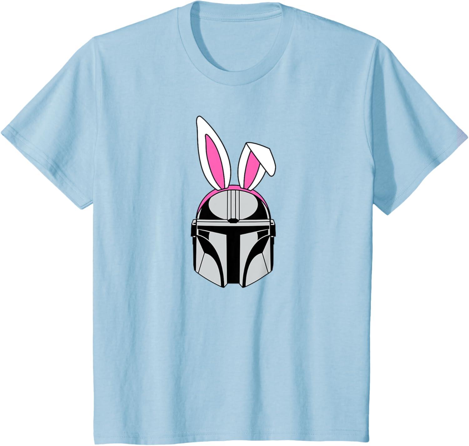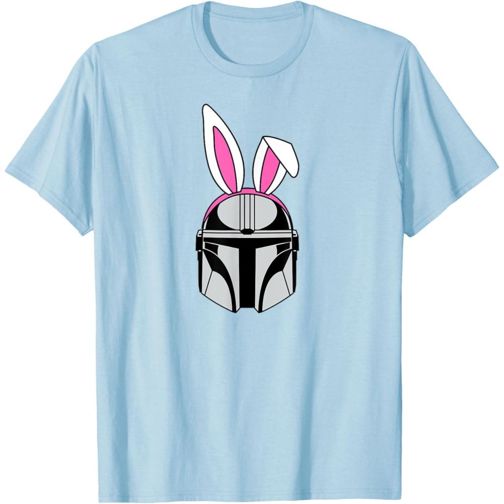 Amazon Essentials The Mandalorian Helmet Spring Easter Bunny Ears T-Shirt(Baby Blue)