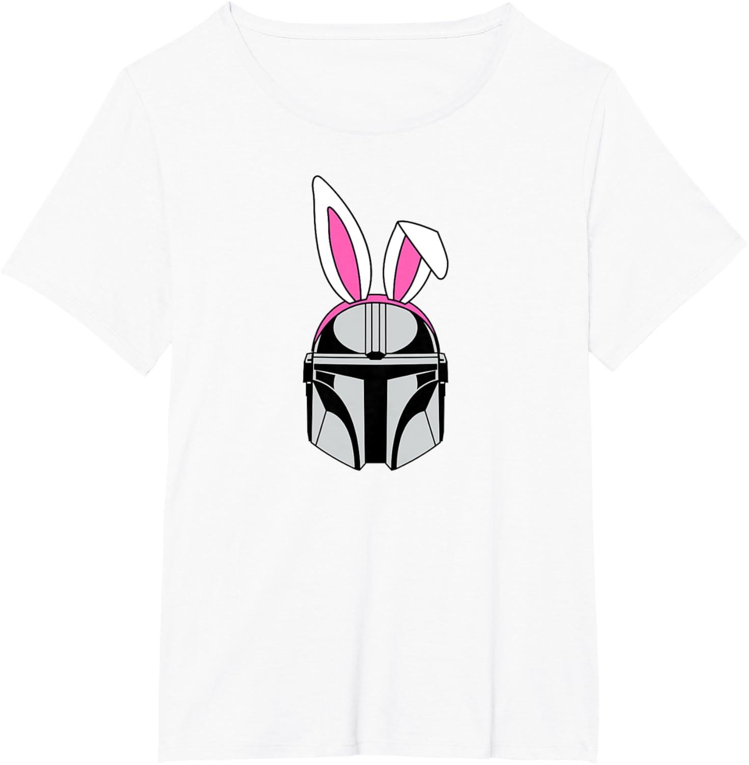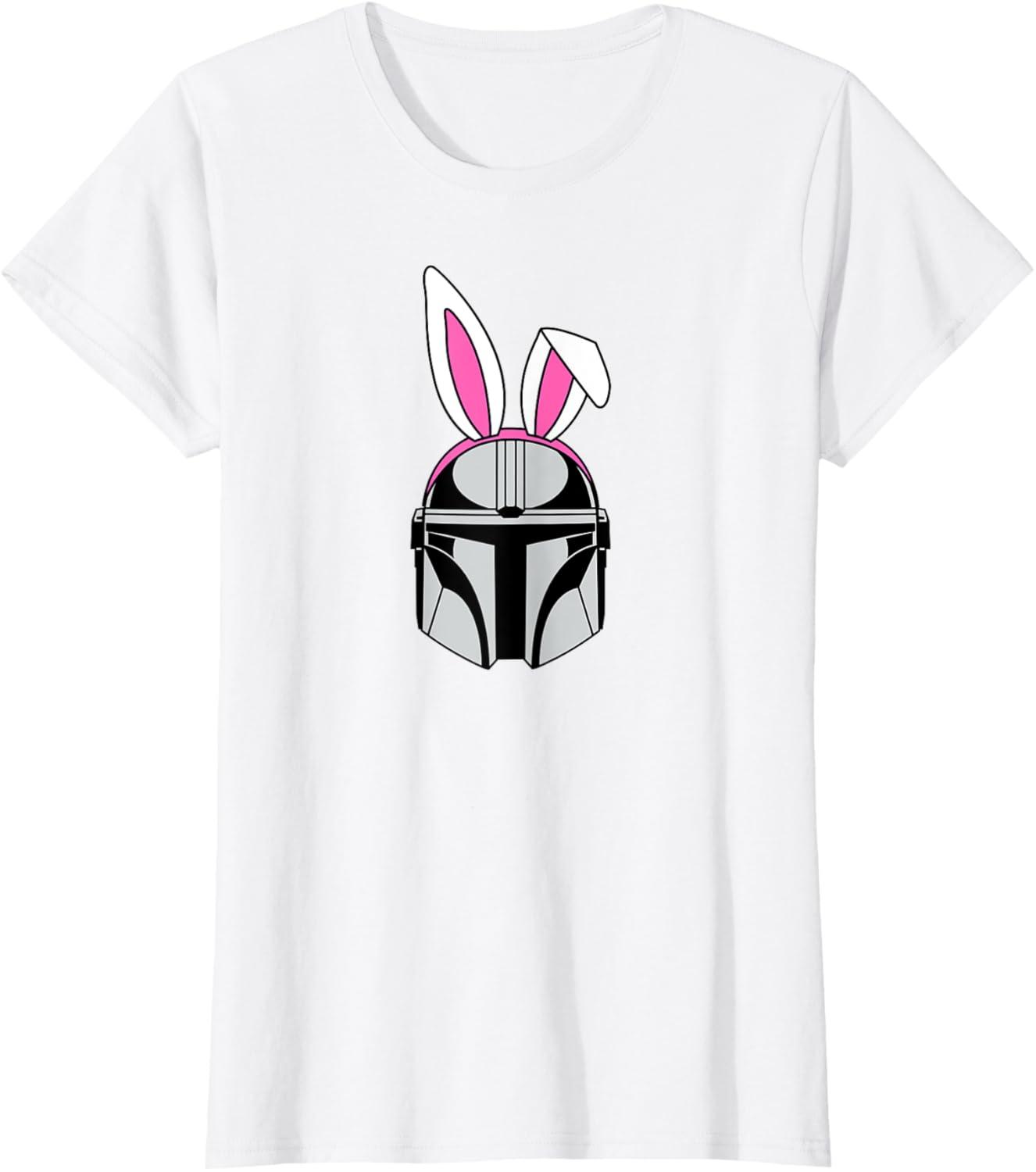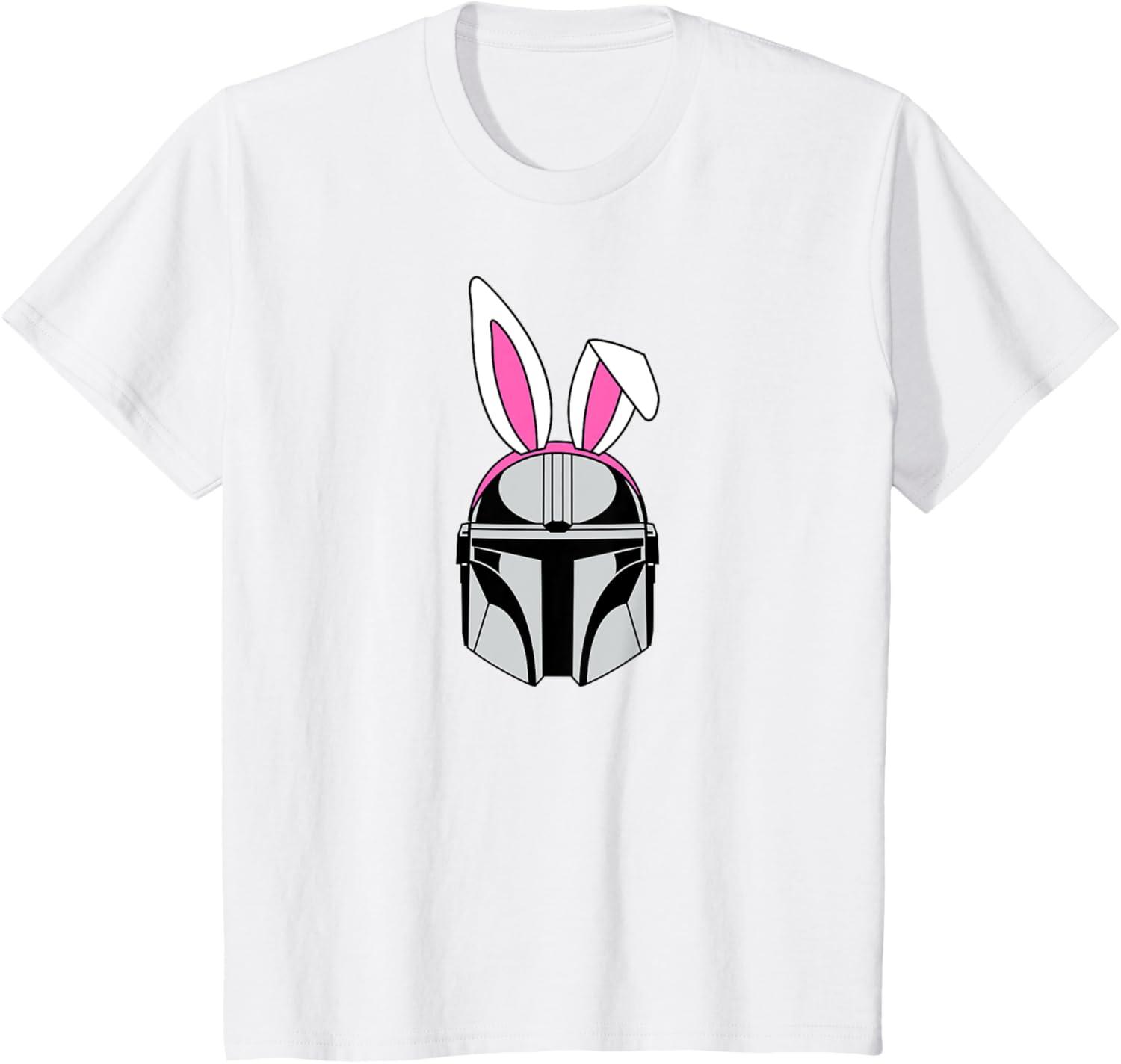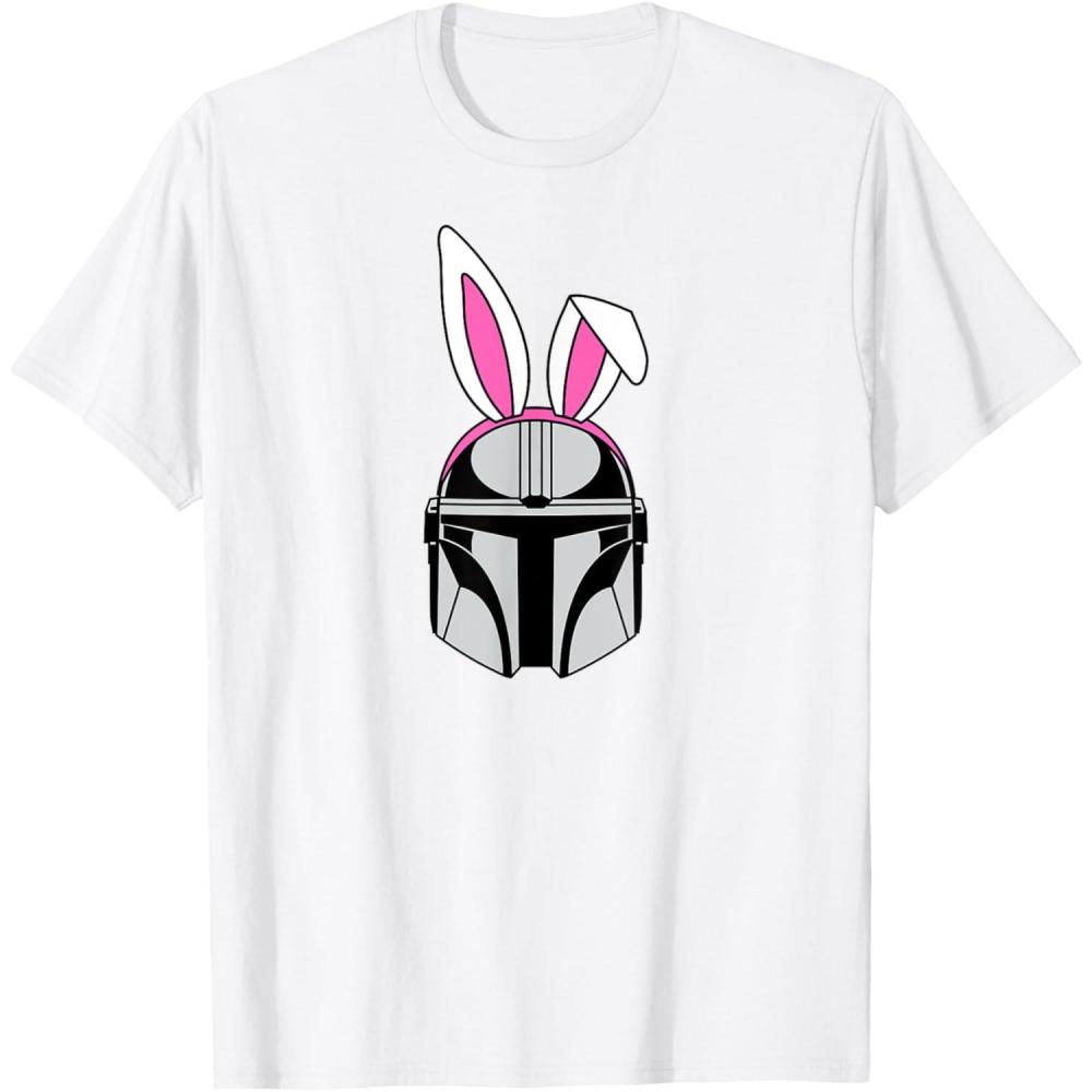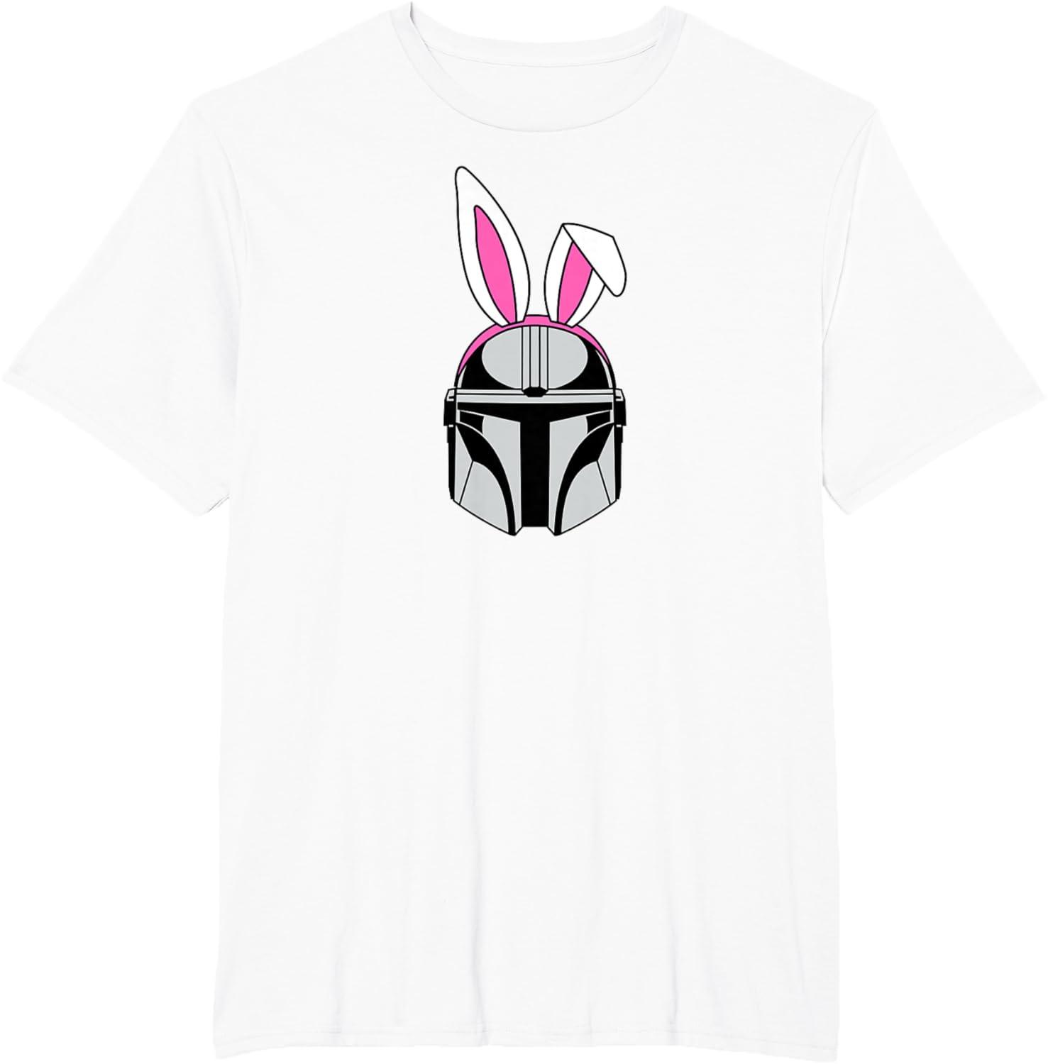 Amazon Essentials The Mandalorian Helmet Spring Easter Bunny Ears T-Shirt(White)