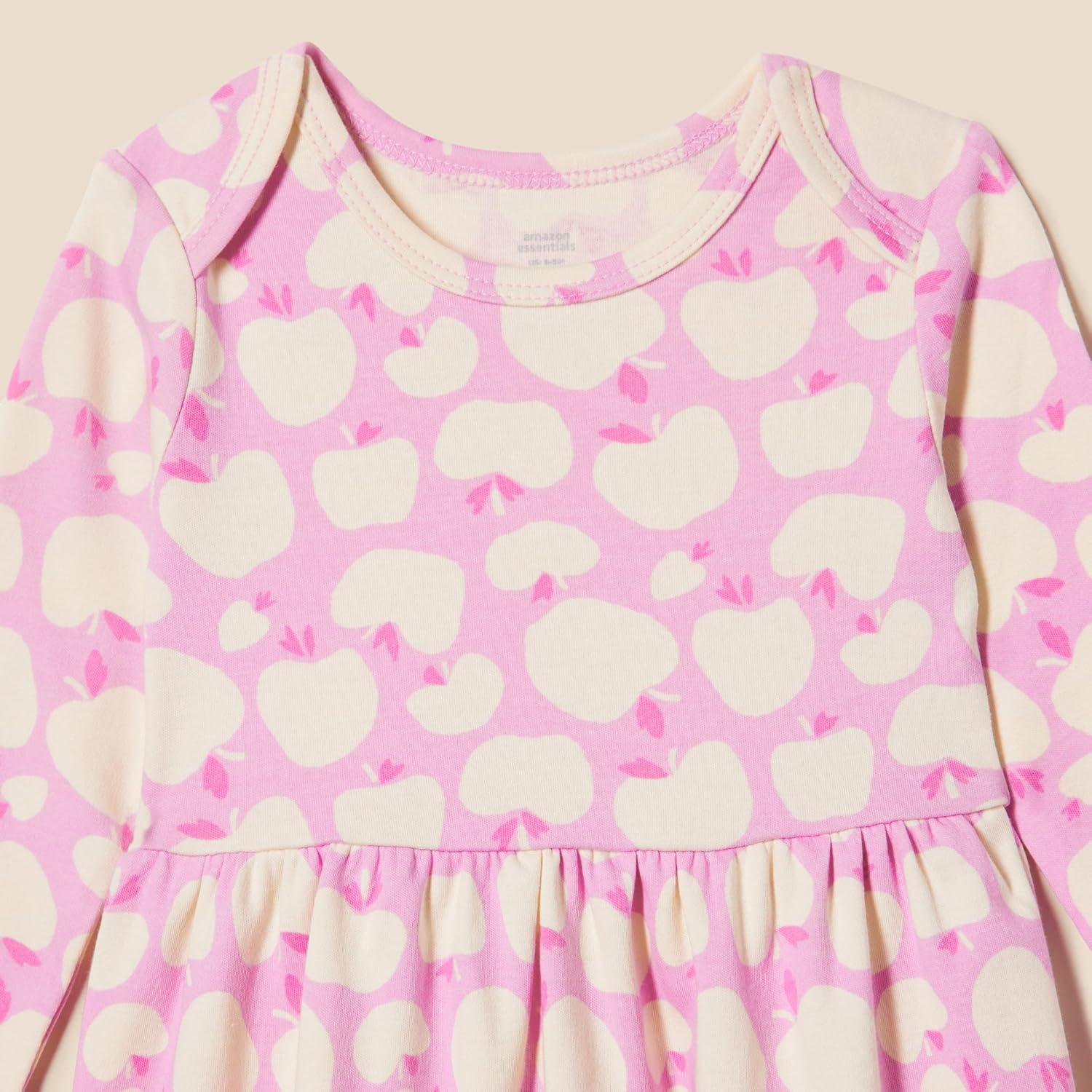 Amazon Essentials Toddlers and Baby Girls’ Cotton Long-Sleeve Dress, Pack of 3(Pink/Apples)
