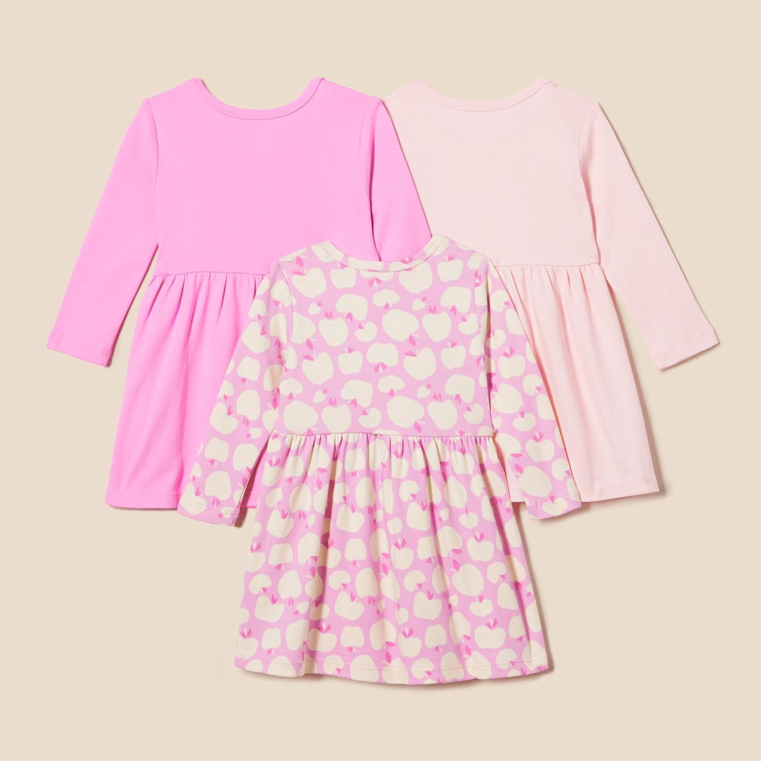 Amazon Essentials Toddlers and Baby Girls' Cotton Long-Sleeve Dress, Pack of 3(Pink/Apples)