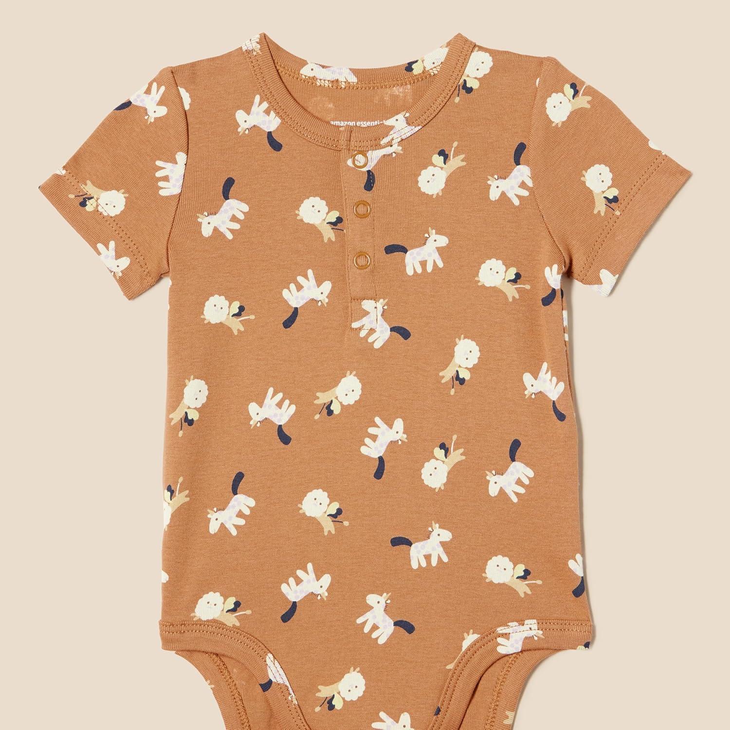 Amazon Essentials Unisex Babies’ Henley Bodysuit, Pack of 2(Pale Peach/Lion and Pony)