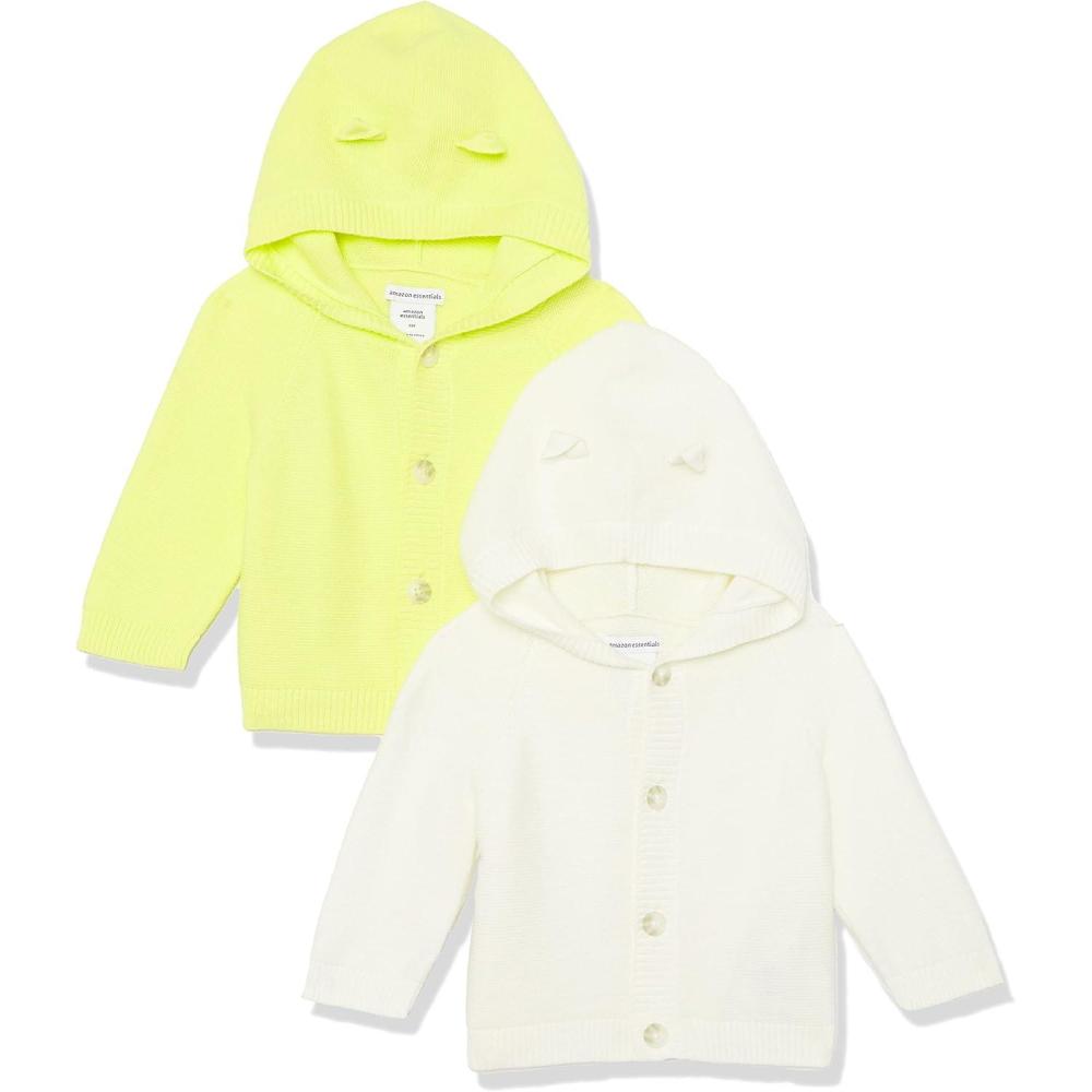 Amazon Essentials Unisex Babies’ Hooded Sweater, Pack of 2(Ivory/Lemon Yellow)