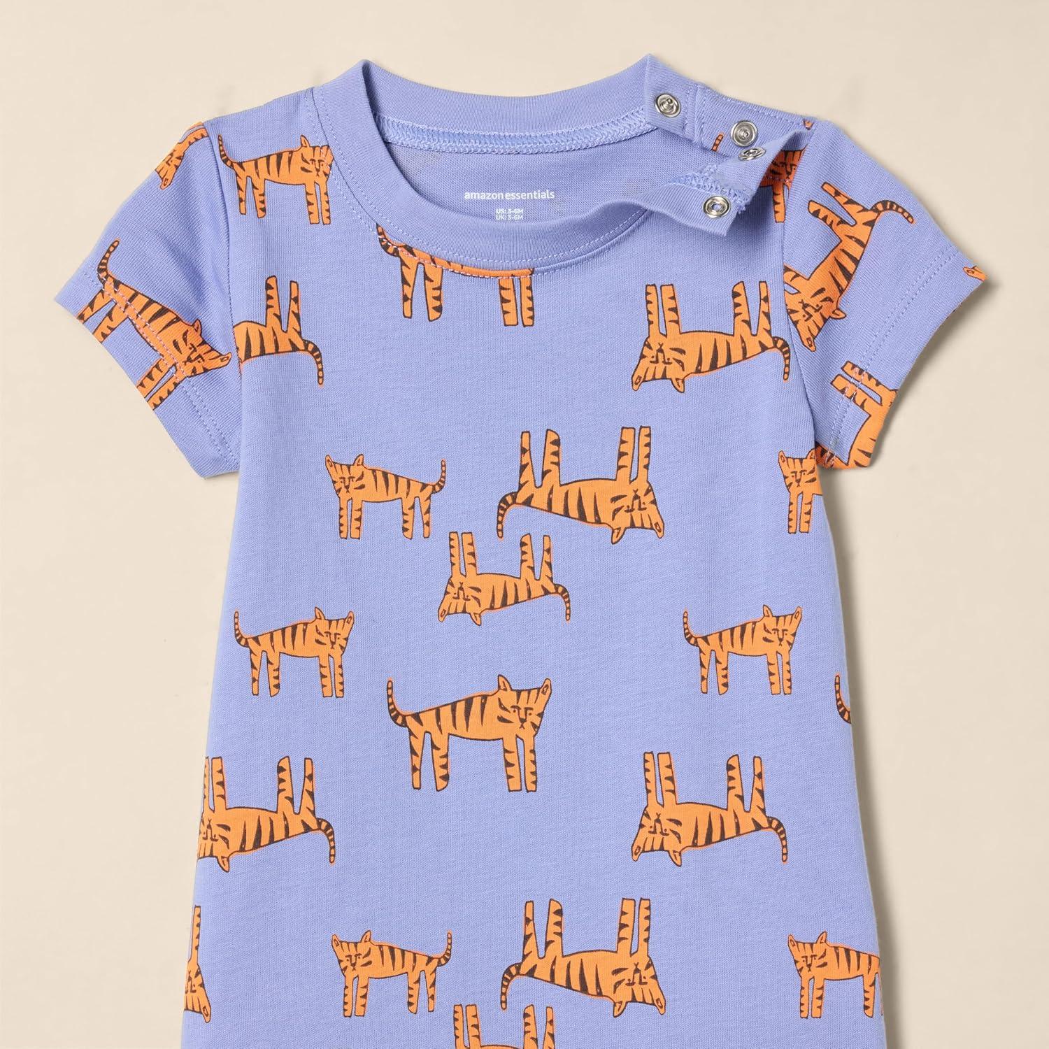 Amazon Essentials Unisex Babies' Sleeveless and Short-Sleeve Romper Set, Pack of 2(Purple Melon Tiger/Stripe)