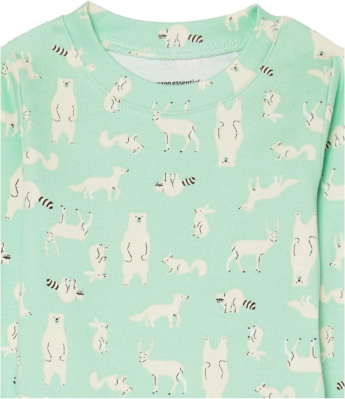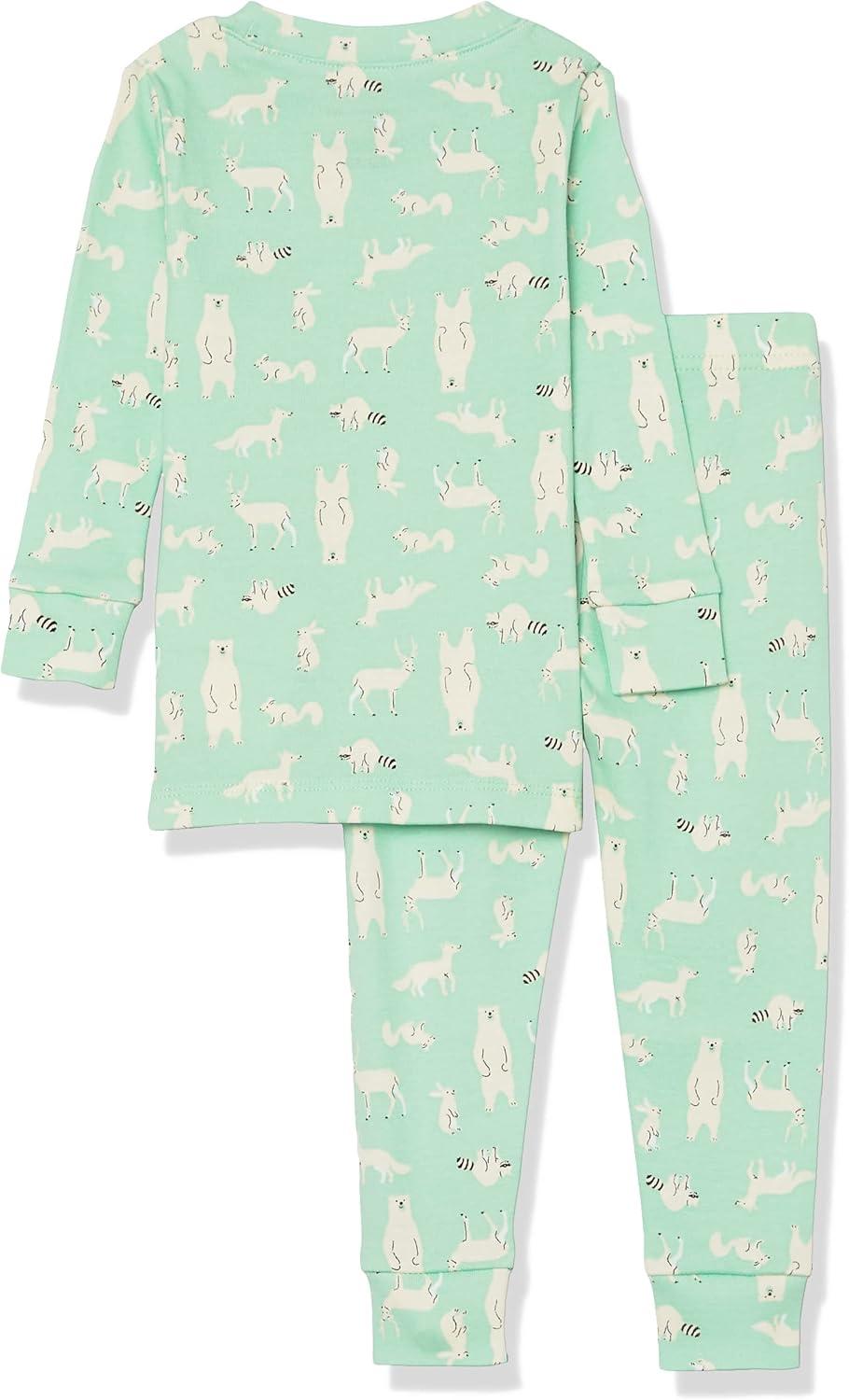 Amazon Essentials Unisex Babies, Toddlers and Kids' Snug-Fit Cotton Pajama Sleepwear Sets(Mint Green Forest Animals)