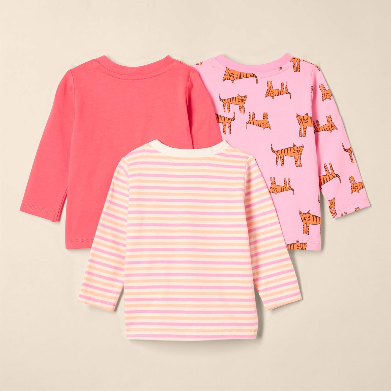 Amazon Essentials Unisex-Baby Relaxed-Fit 100% Cotton Long-Sleeve T-Shirts(Pink Tiger/Stripe)