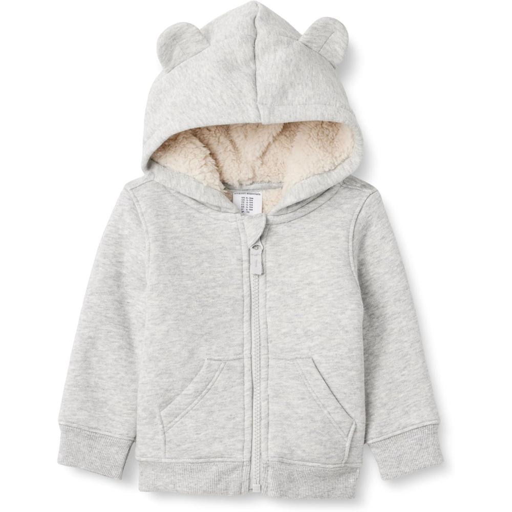 Amazon Essentials unisex-baby Sherpa Lined Full Zipper Hoodie(Light Grey Heather)