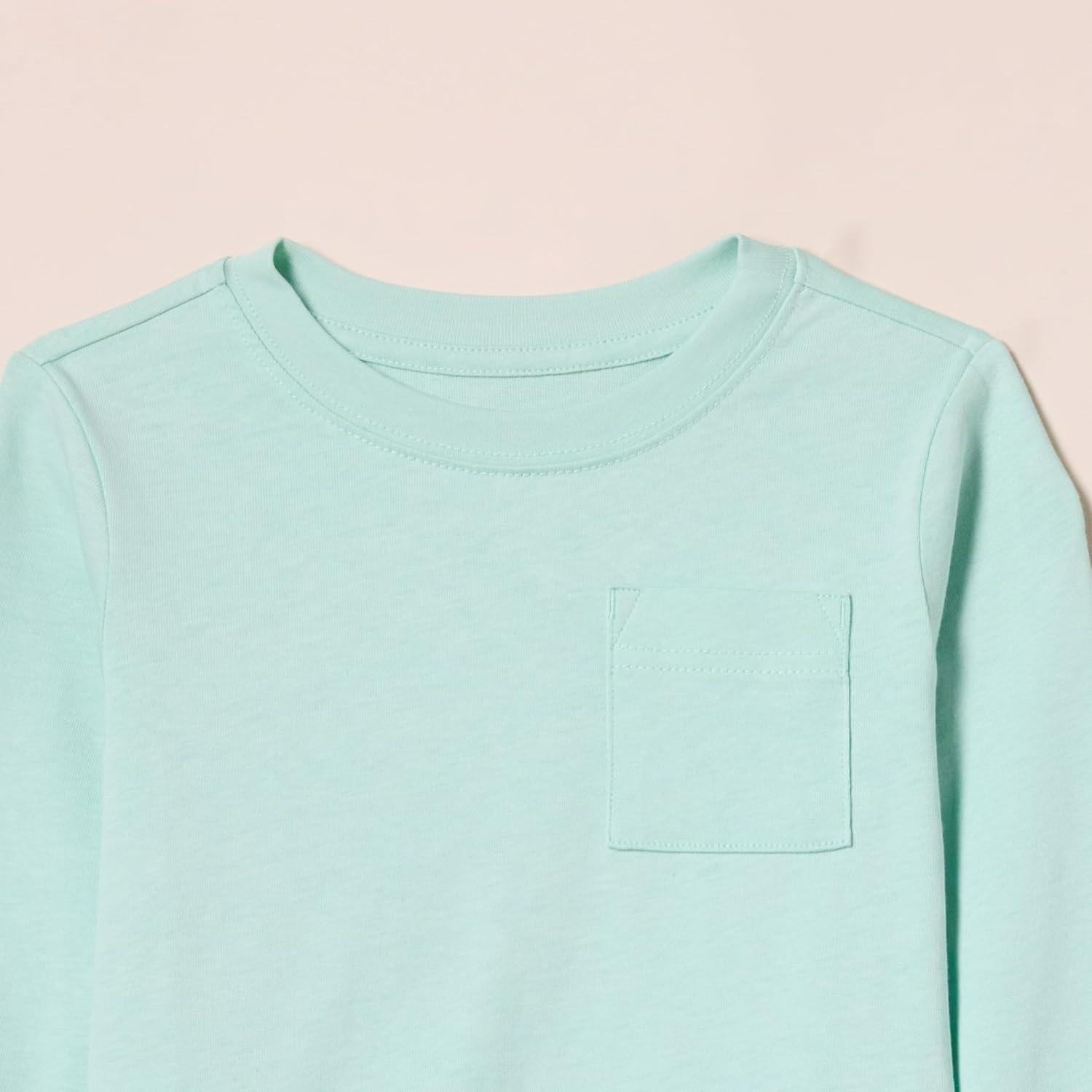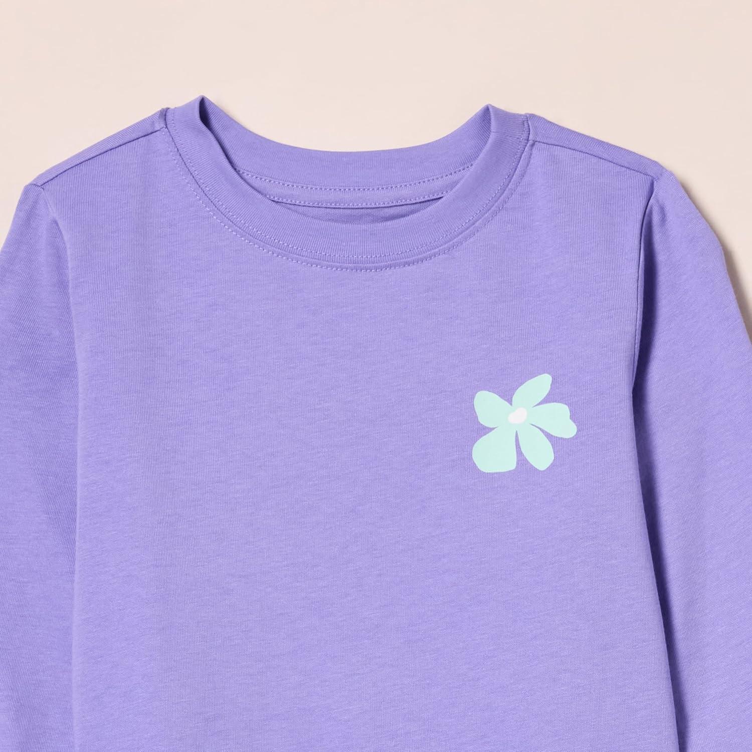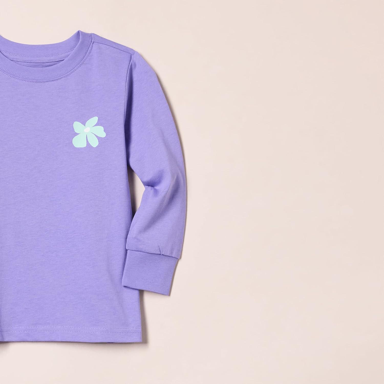 Amazon Essentials Unisex Kids and Toddlers’ Long-Sleeve Rib Cuff T-Shirt, Pack of 2(Light Purple/Mint Green Flowers)