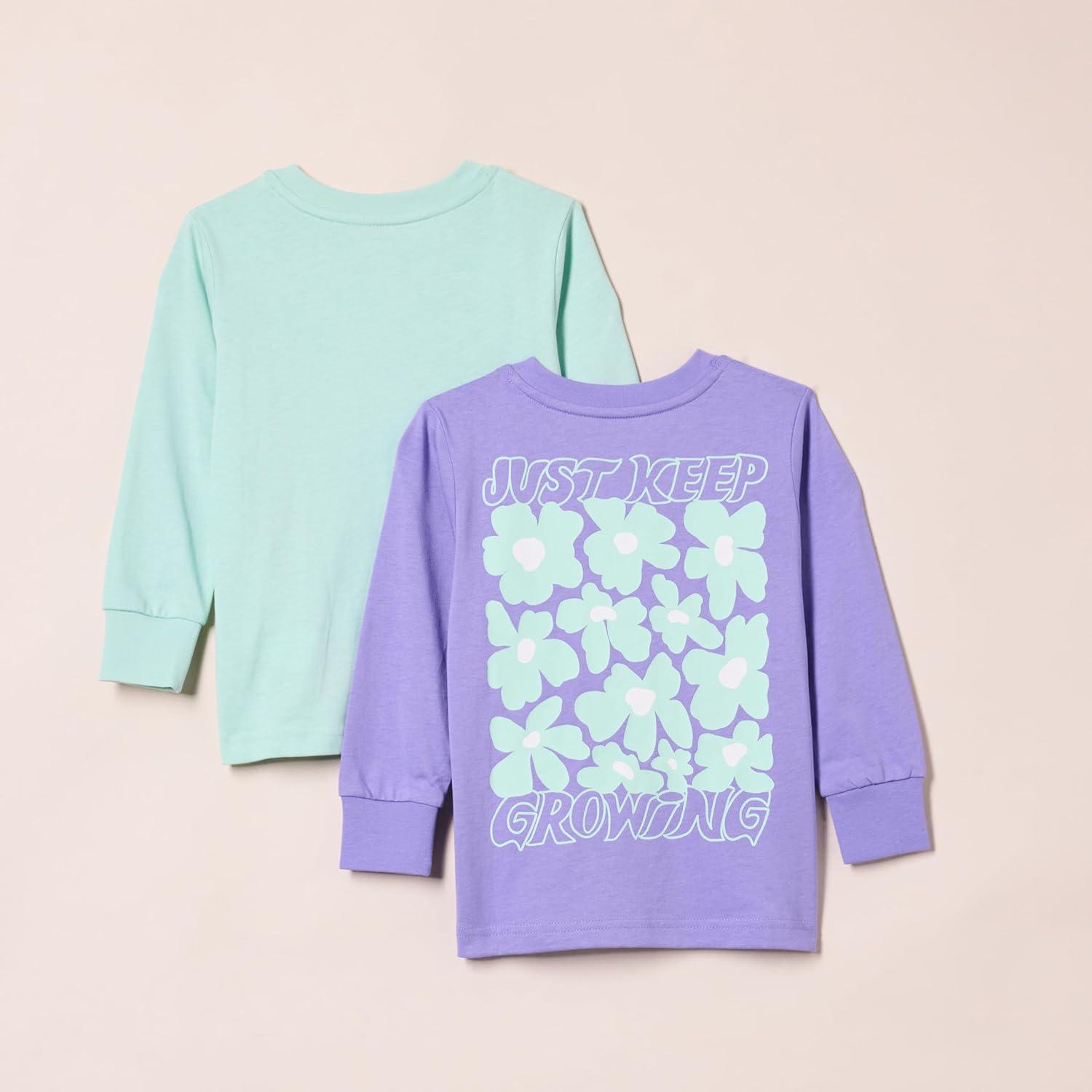 Amazon Essentials Unisex Kids and Toddlers' Long-Sleeve Rib Cuff T-Shirt, Pack of 2(Light Purple/Mint Green Flowers)