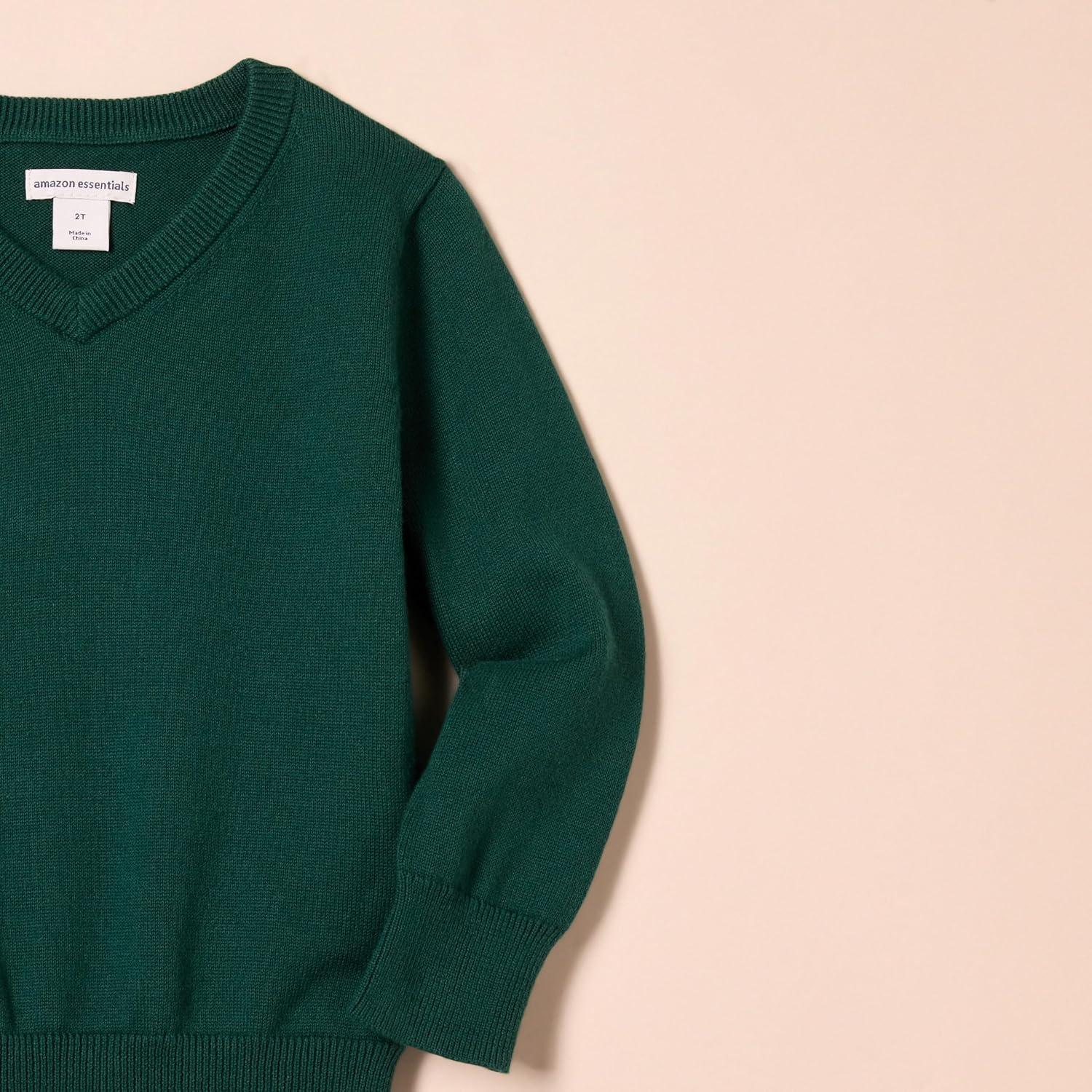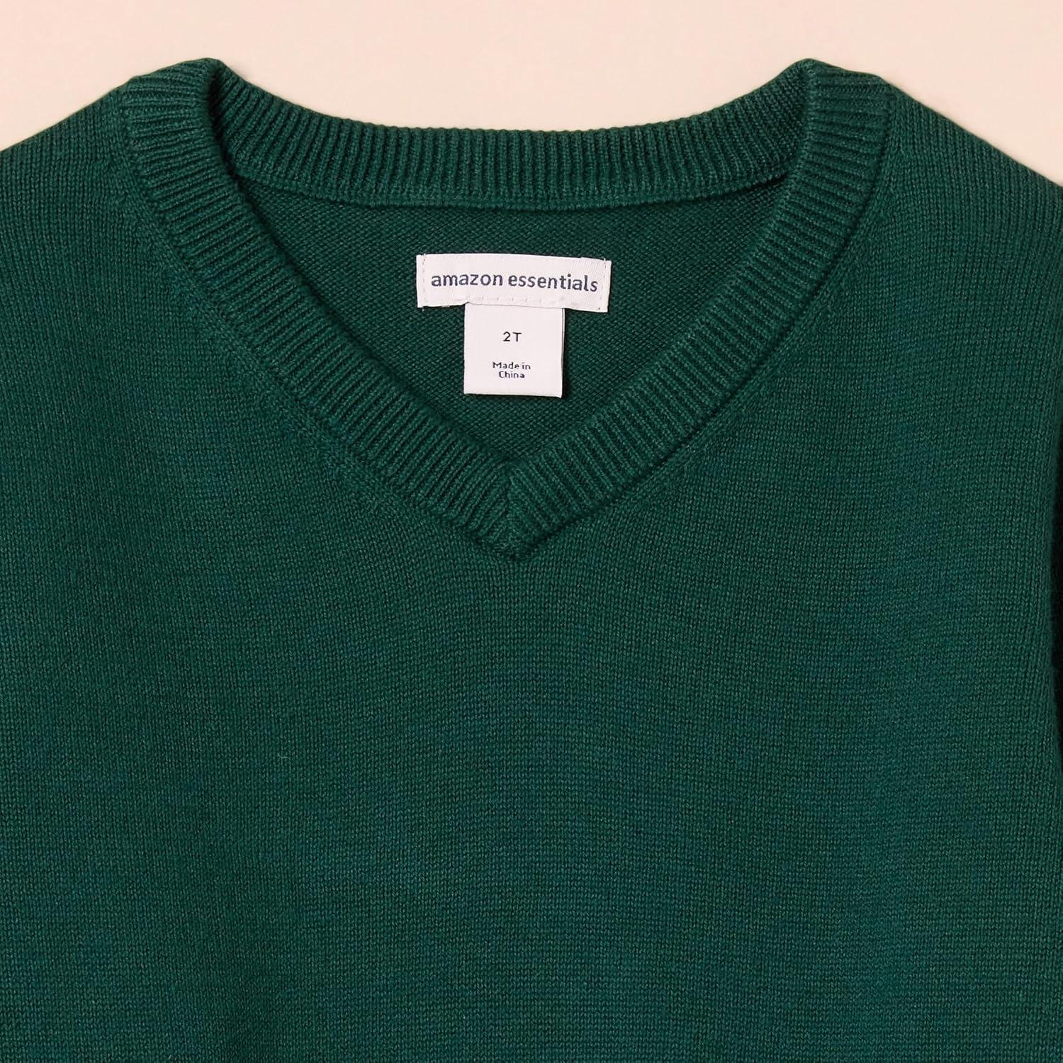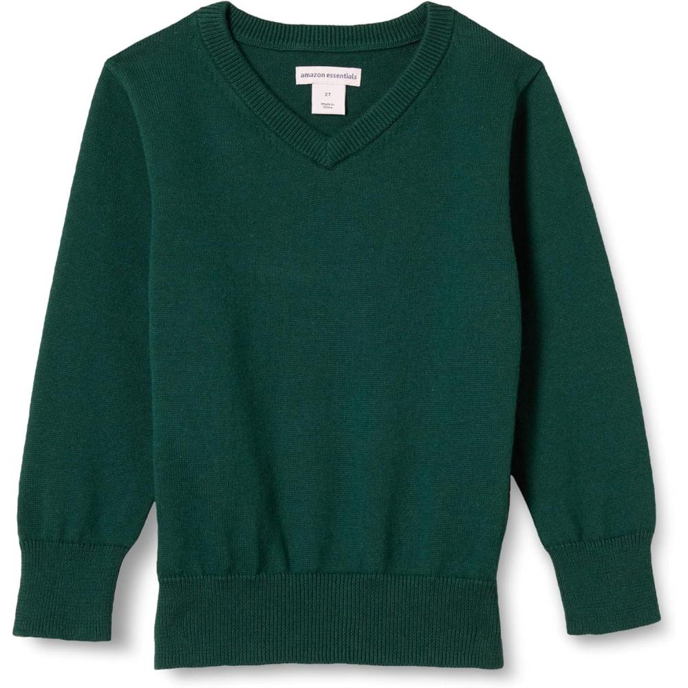 Amazon Essentials Unisex Kids and Toddlers’ Uniform Cotton V-Neck Sweater(Dark Green Heather)
