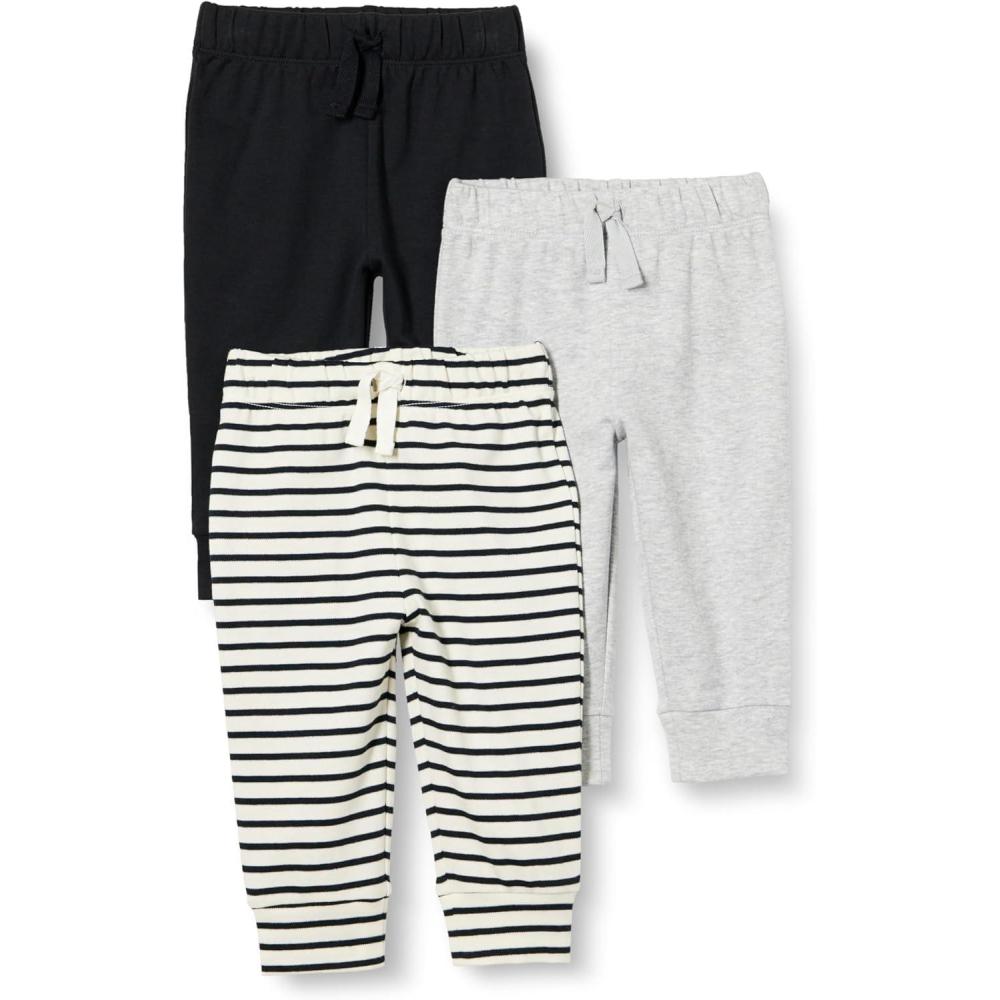 Amazon Essentials Unisex Toddlers and Babies' Cotton Pull-On Pants, Multipacks(Black/Light Grey Heather/Stripe)