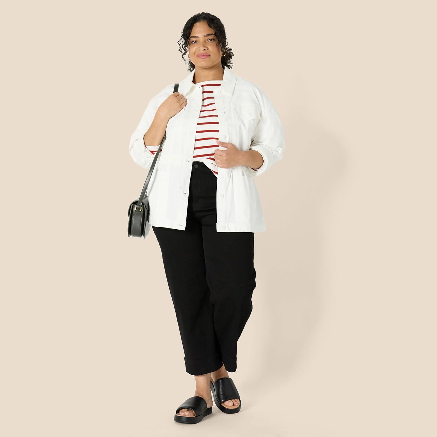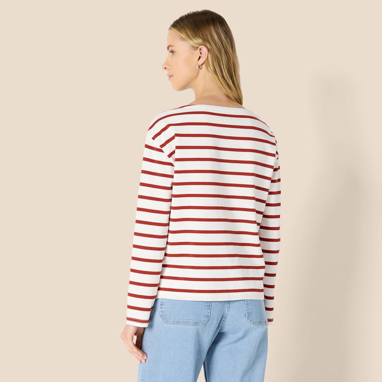 Amazon Essentials Women’s 100% Cotton Heavyweight Long-Sleeve Boatneck Top(Eggshell White Mariner Stripe)
