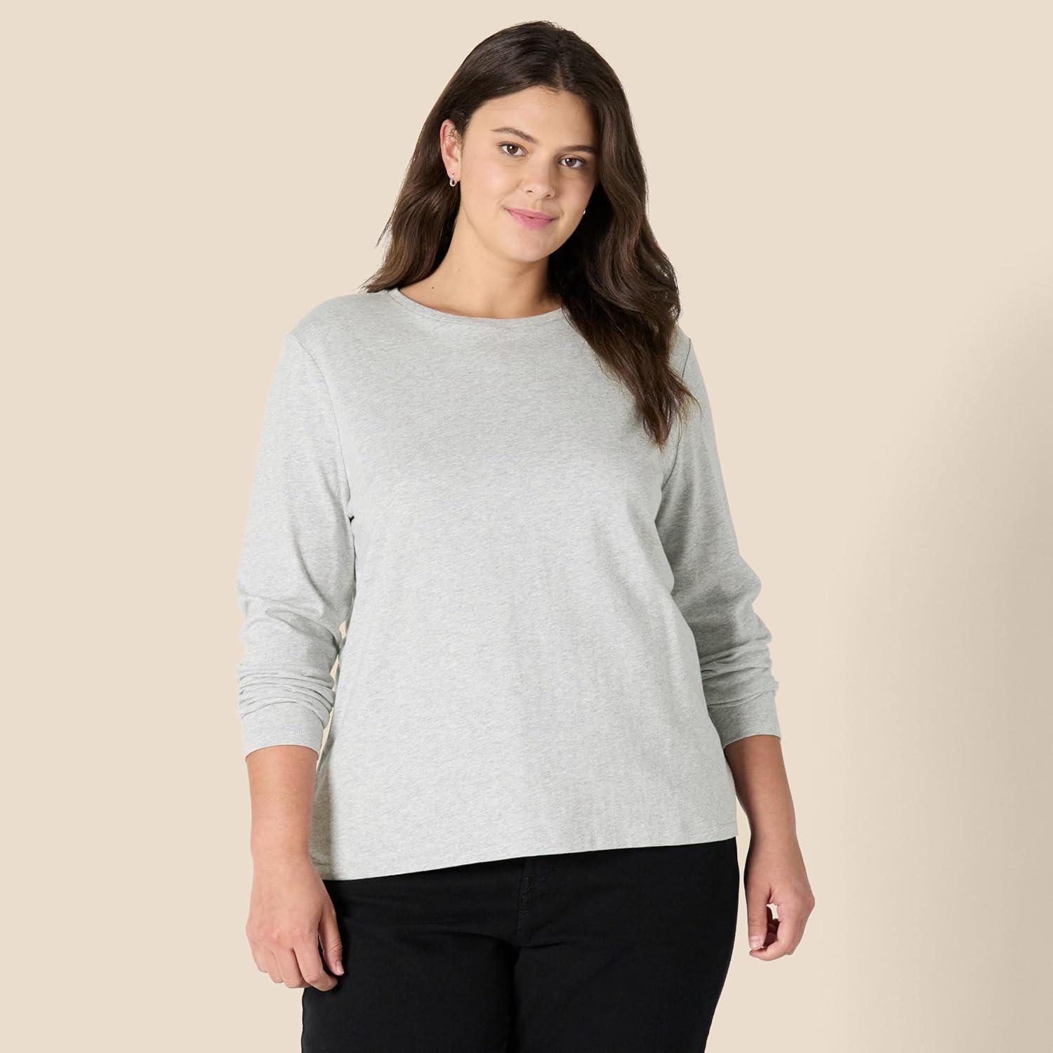 Amazon Essentials Women’s 100% Cotton Regular-Fit Long-Sleeve Crewneck T-Shirt(Light Grey Heather)
