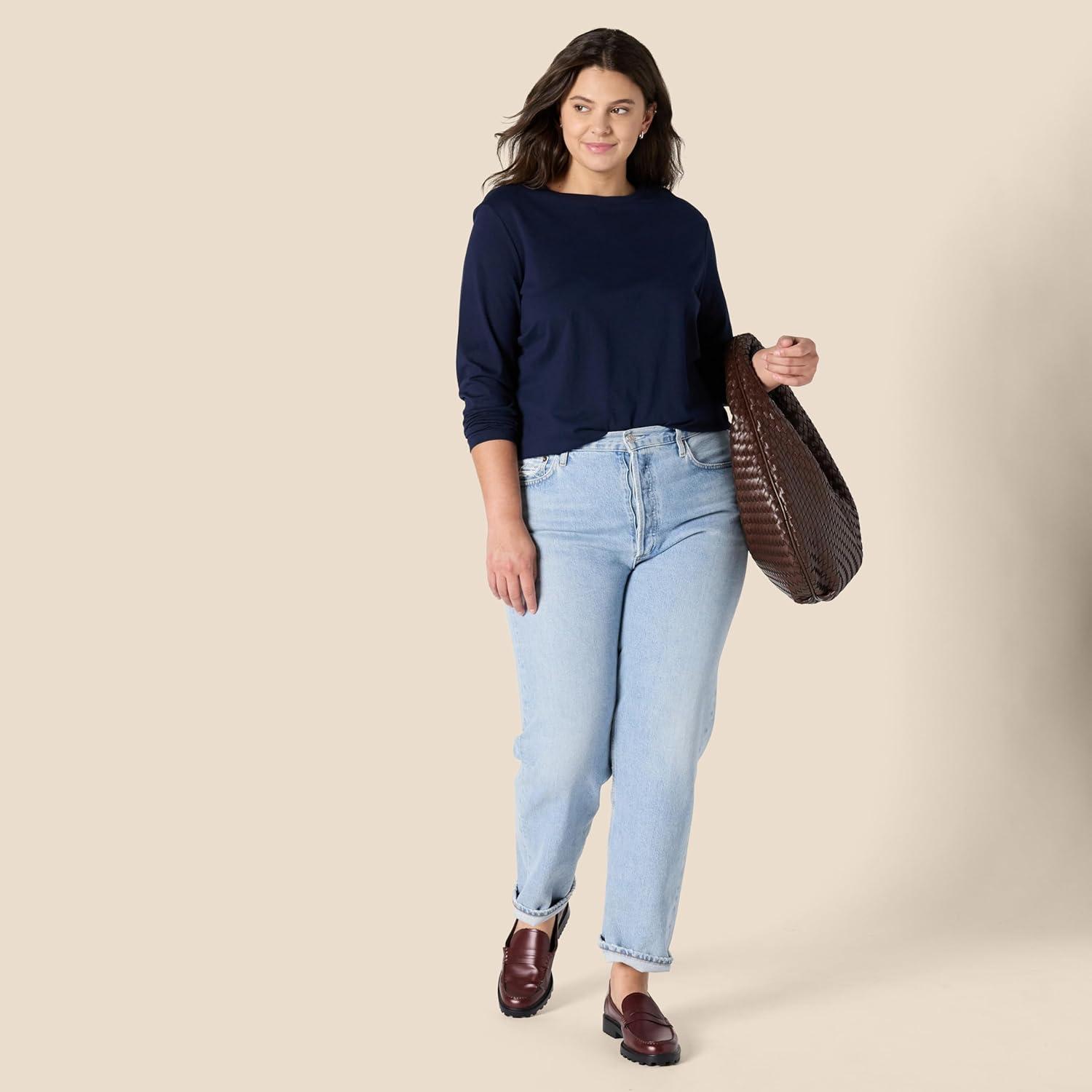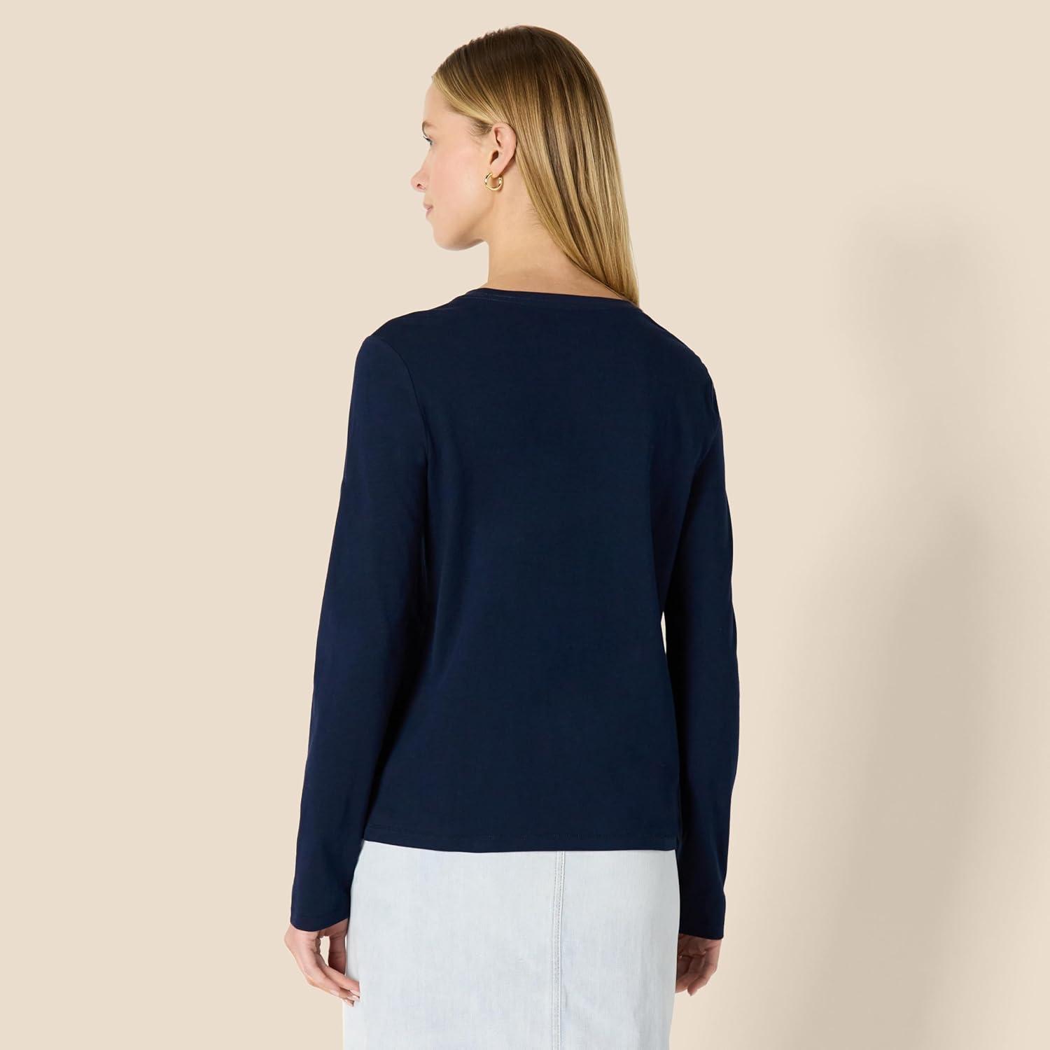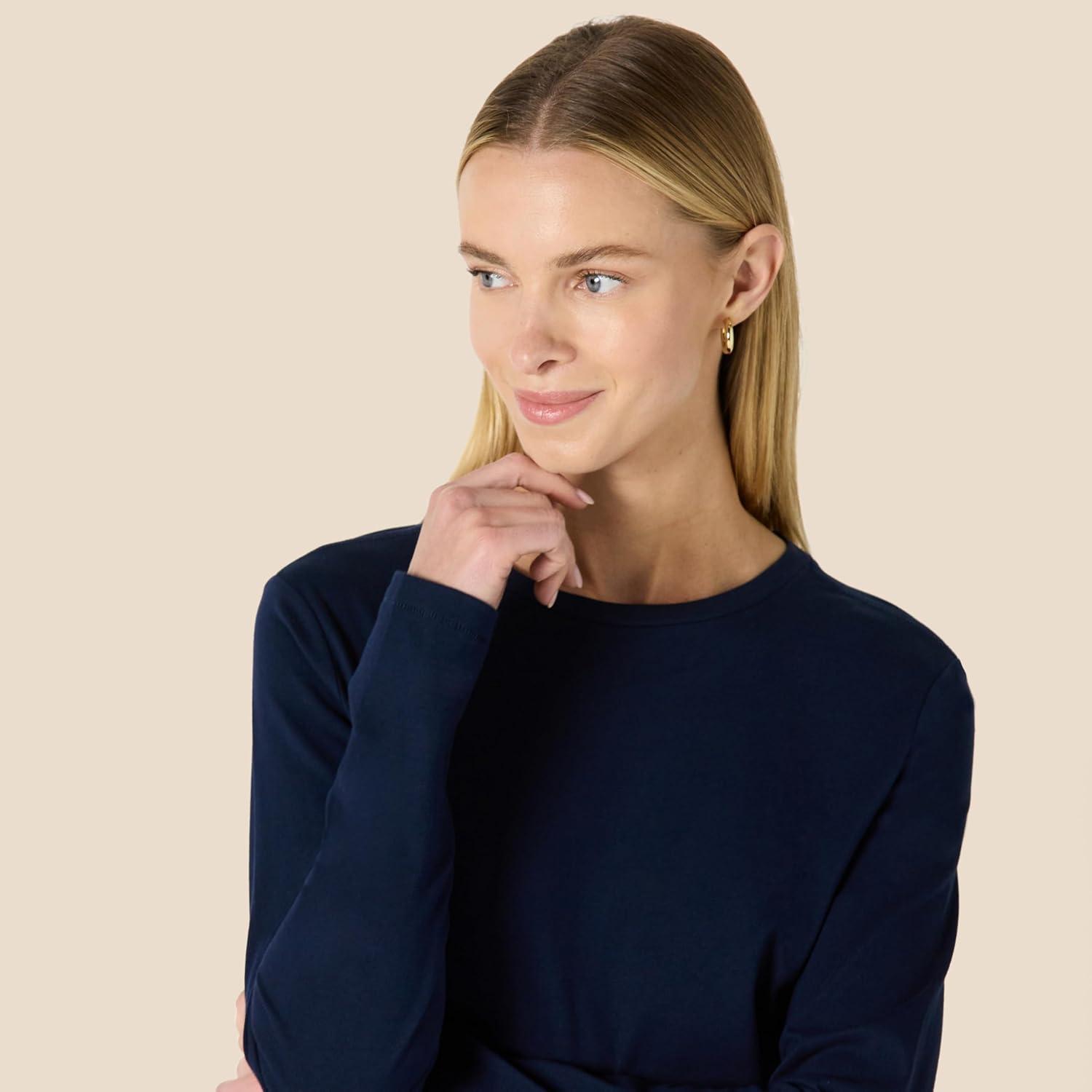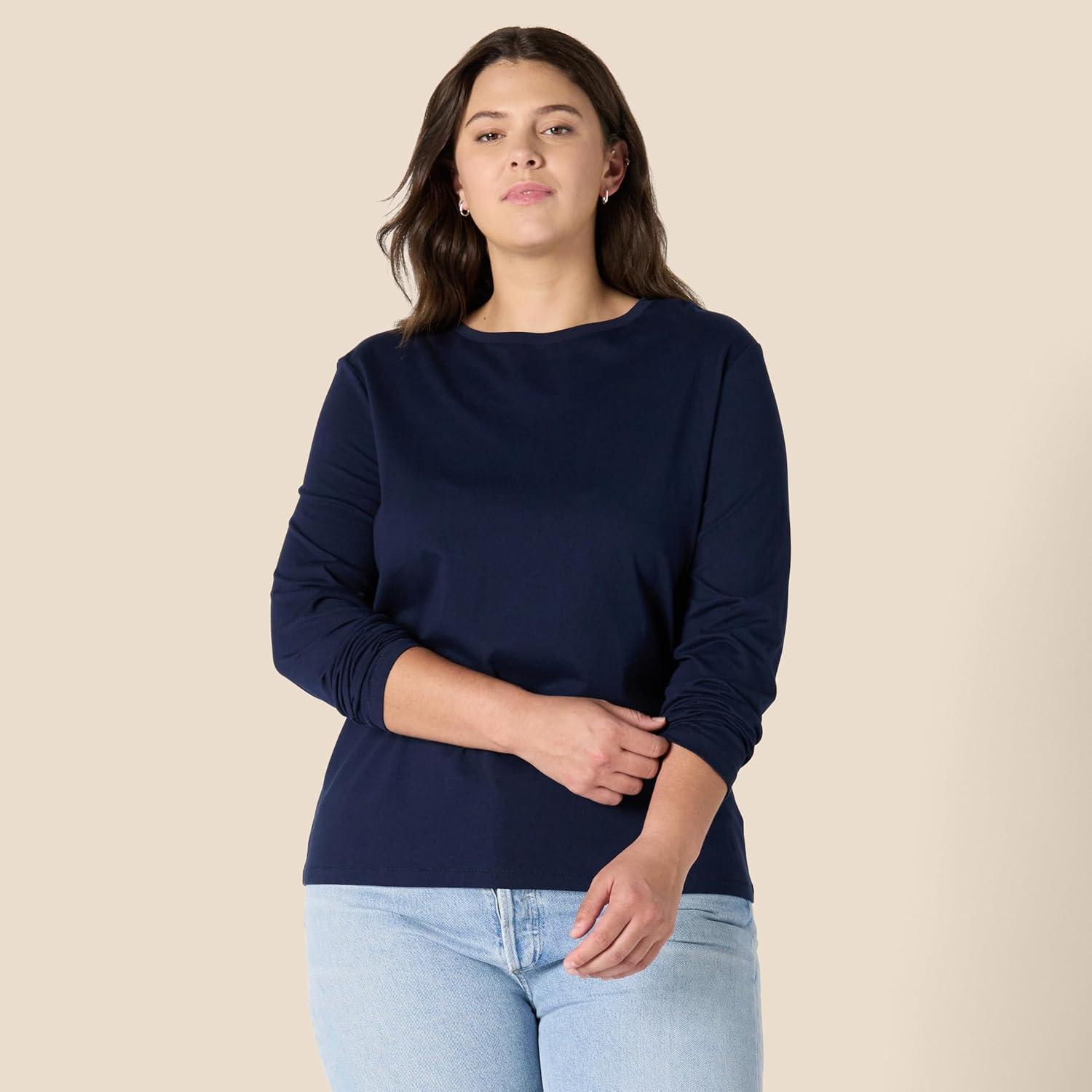 Amazon Essentials Women’s 100% Cotton Regular-Fit Long-Sleeve Crewneck T-Shirt(Navy)